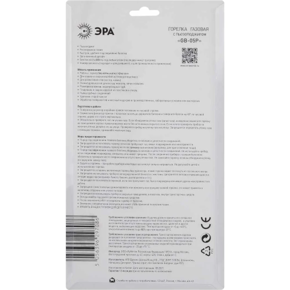 Купить Газовая горелка ЭРА GB-05P с пьезоподжигом установка на баллон вращение 360 градусов, Б0052493 по лучшей цене с доставкой - интернет магазин №1 в России