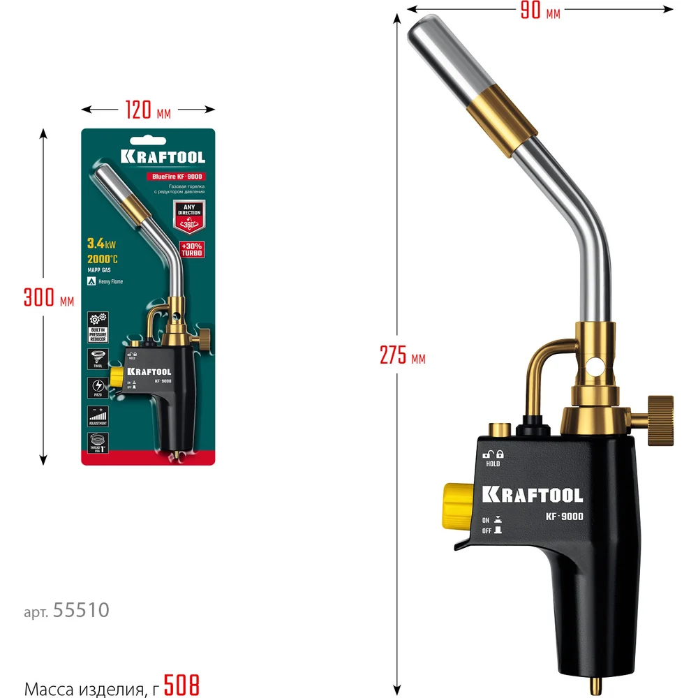 Купить Газовая горелка KRAFTOOL KF-9000 Blue Fire с пьезоподжигом на баллон, 2000C 55510 по лучшей цене с доставкой - интернет магазин №1 в России