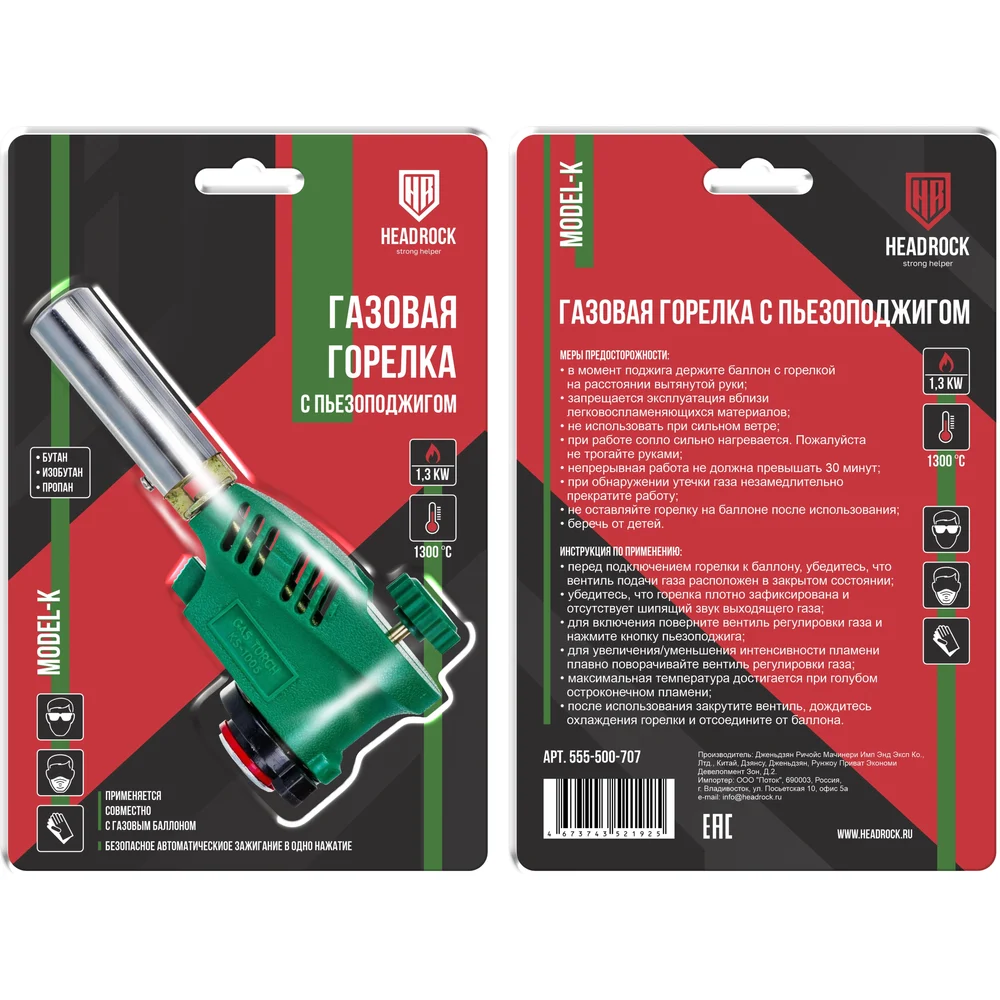 Купить Газовая горелка с пьезоподжигом HEADROCK model k 555-500-707 по лучшей цене с доставкой - интернет магазин №1 в России