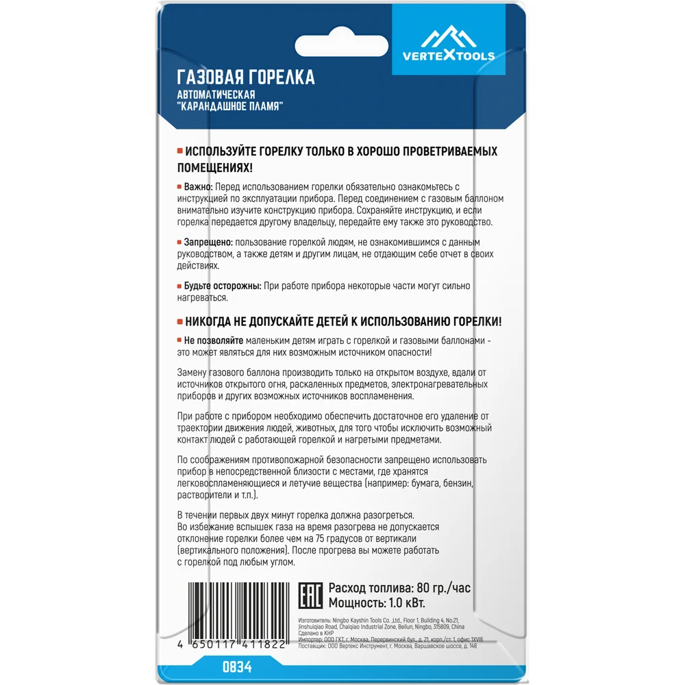 Купить Газовая горелка с пьезоподжигом vertextools карандашное пламя 0834 по лучшей цене с доставкой - интернет магазин №1 в России
