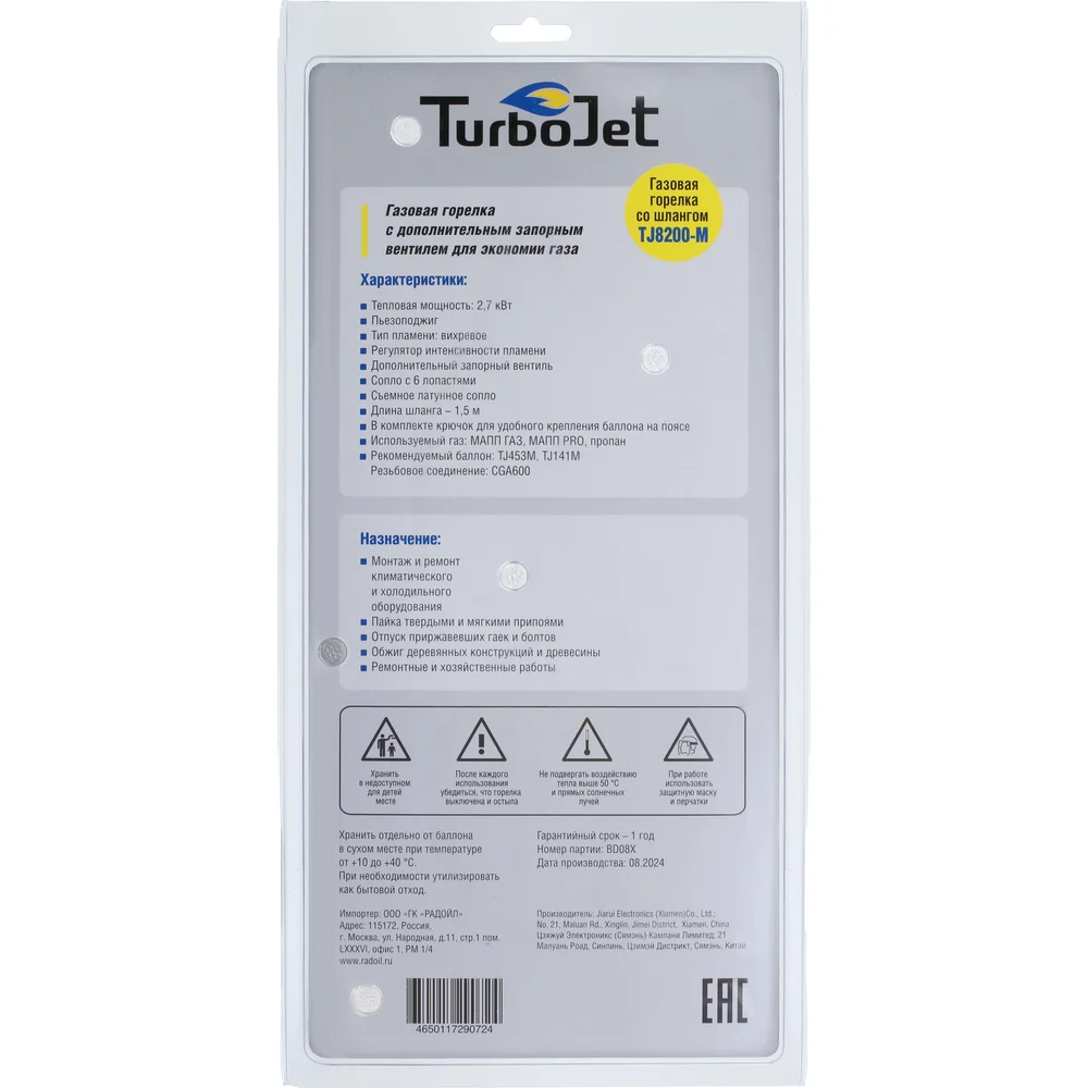 Купить Газовая горелка со шлангом Turbojet TJ8200-M по лучшей цене с доставкой - интернет магазин №1 в России