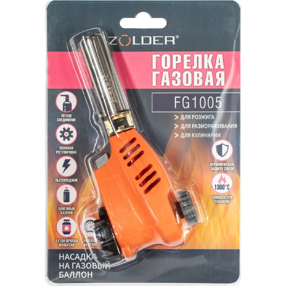 Купить Газовая горелка ZOLDER FG1005 керамика пьезоподжиг с регулировкой на баллон /50 ЭК000144169 по лучшей цене с доставкой - интернет магазин №1 в России