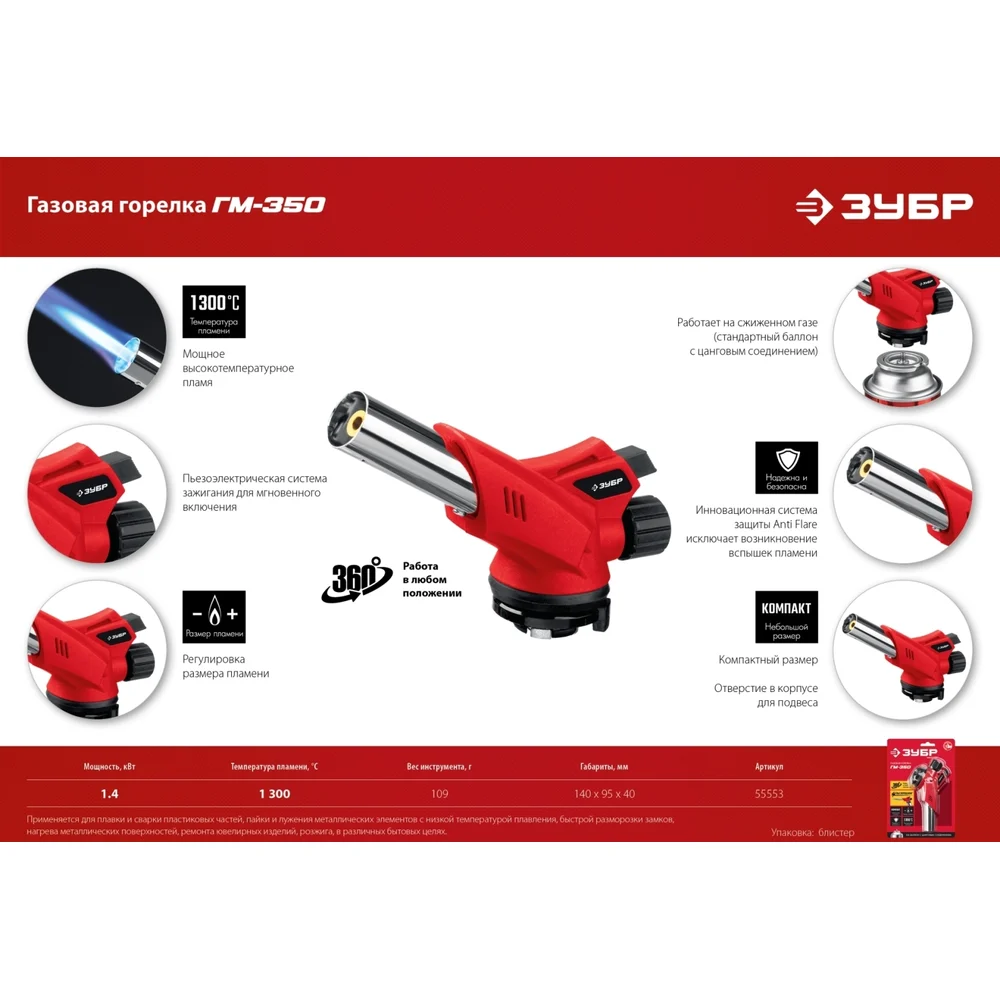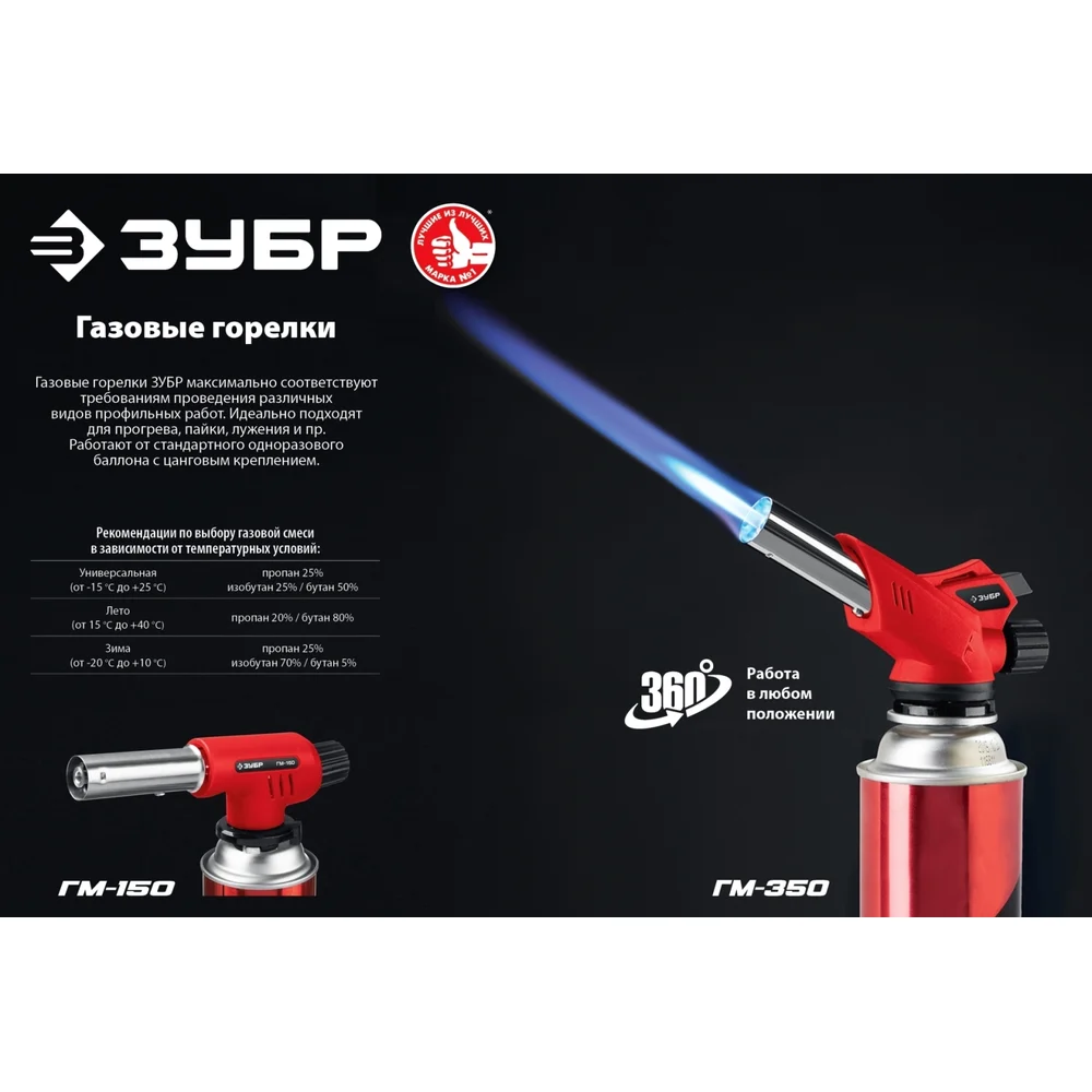 Купить Газовая горелка ЗУБР ГМ-350 с пъезоподжигом 55553 по лучшей цене с доставкой - интернет магазин №1 в России