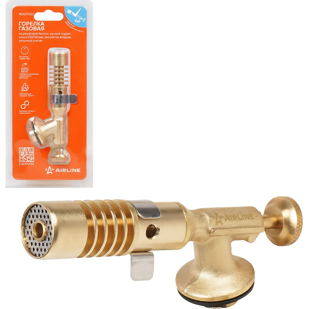 Купить Горелка газовая Airline на резьбовой баллон, ручн.поджиг, сопло D20x60мм, регулятор воздуха, латунный клапан ADGT023 по лучшей цене с доставкой - интернет магазин №1 в России