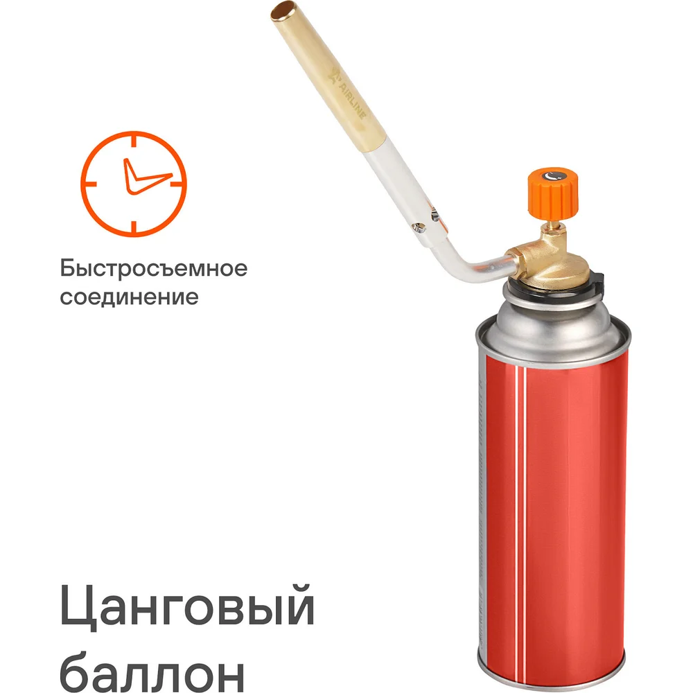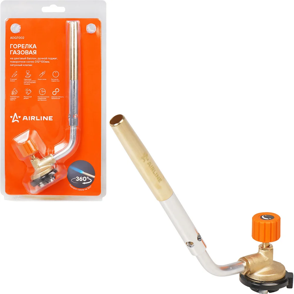 Купить Горелка газовая Airline на цанговый баллон, ручн.поджиг, поворотное сопло D12x130мм, латунный клапан ADGT002 по лучшей цене с доставкой - интернет магазин №1 в России