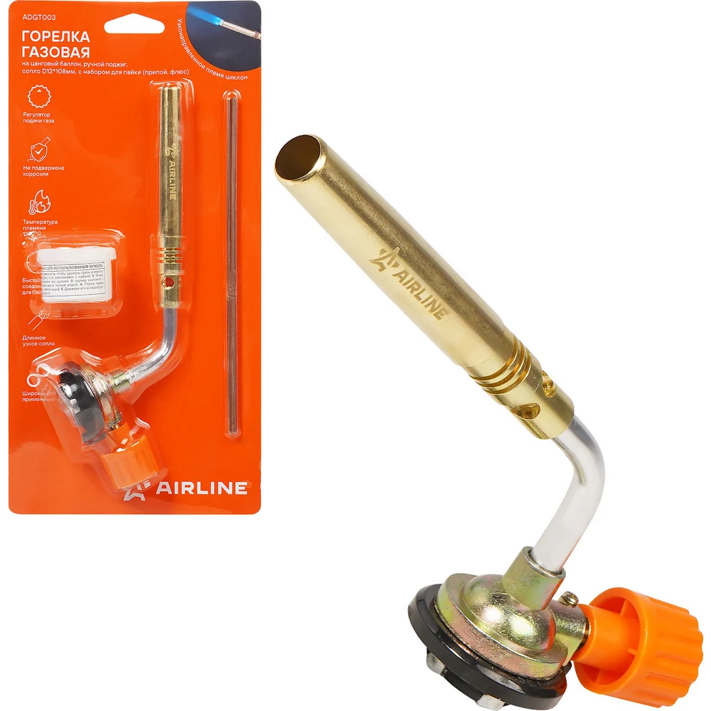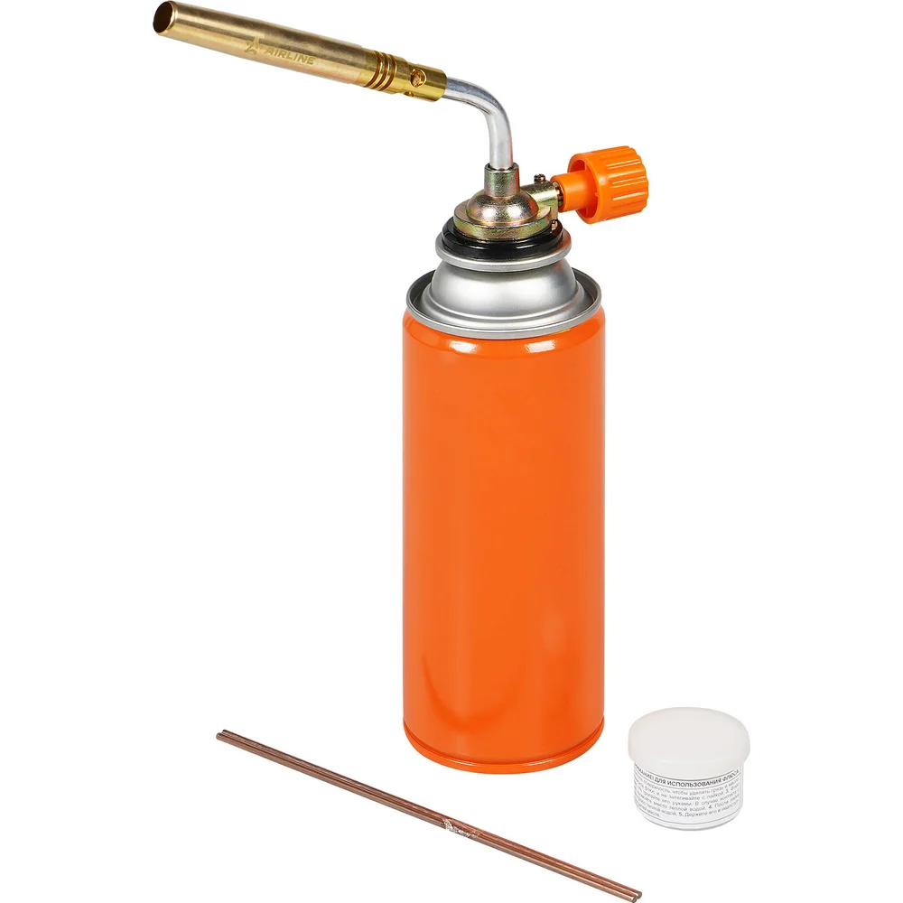 Купить Горелка газовая Airline на цанговый баллон, ручной поджиг, сопло D12x108мм с набором для пайки, припой,флюс ADGT003 по лучшей цене с доставкой - интернет магазин №1 в России