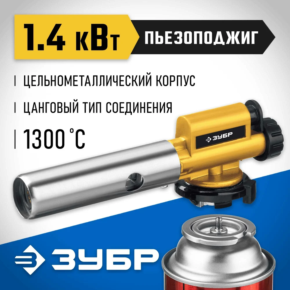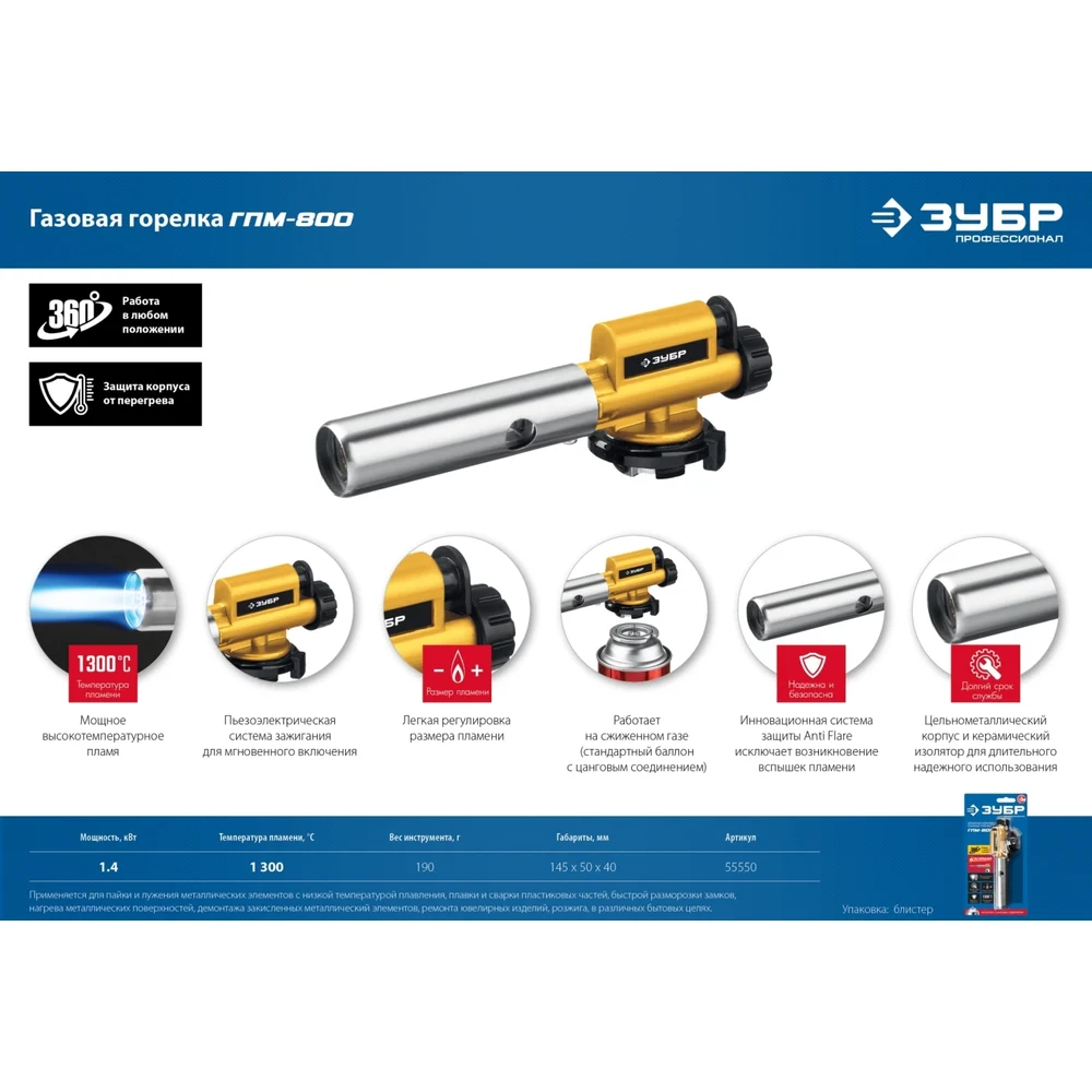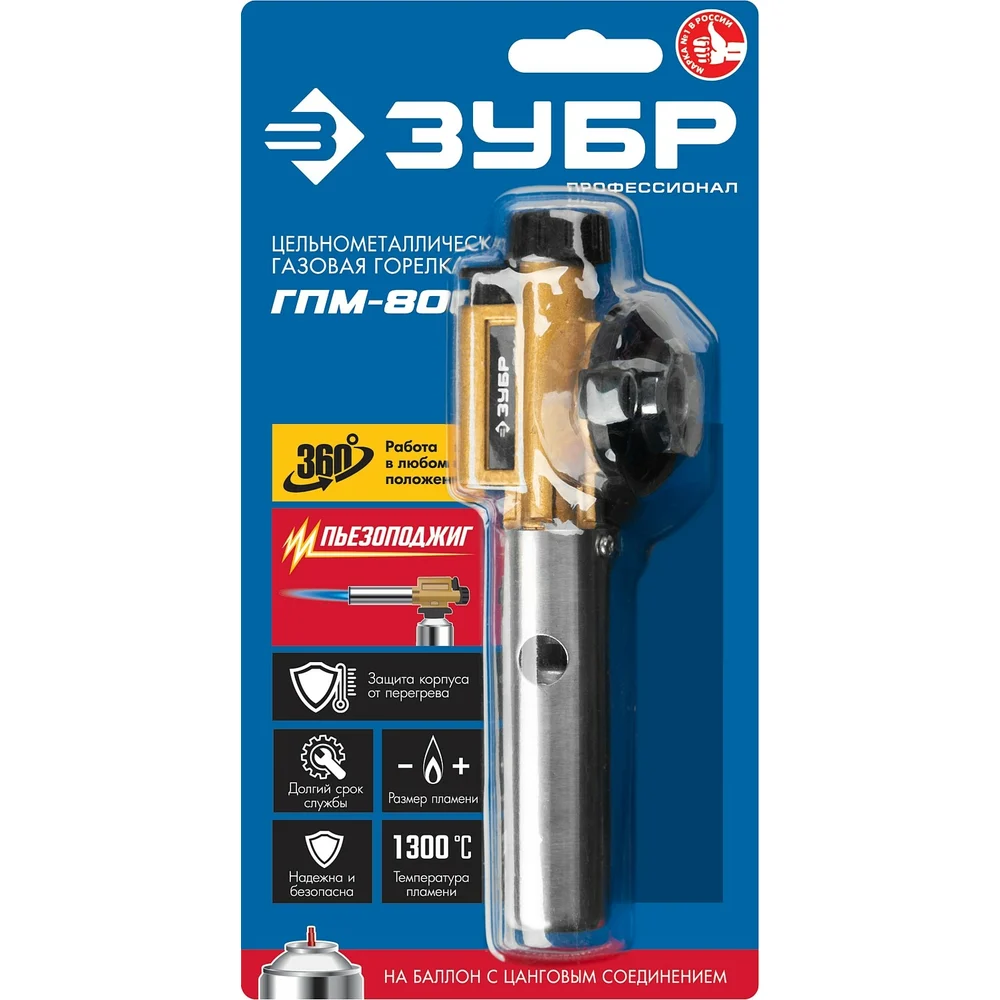 Купить Цельнометаллическая газовая горелка ЗУБР ГПМ-800 с пъезоподжигом 55550 по лучшей цене с доставкой - интернет магазин №1 в России
