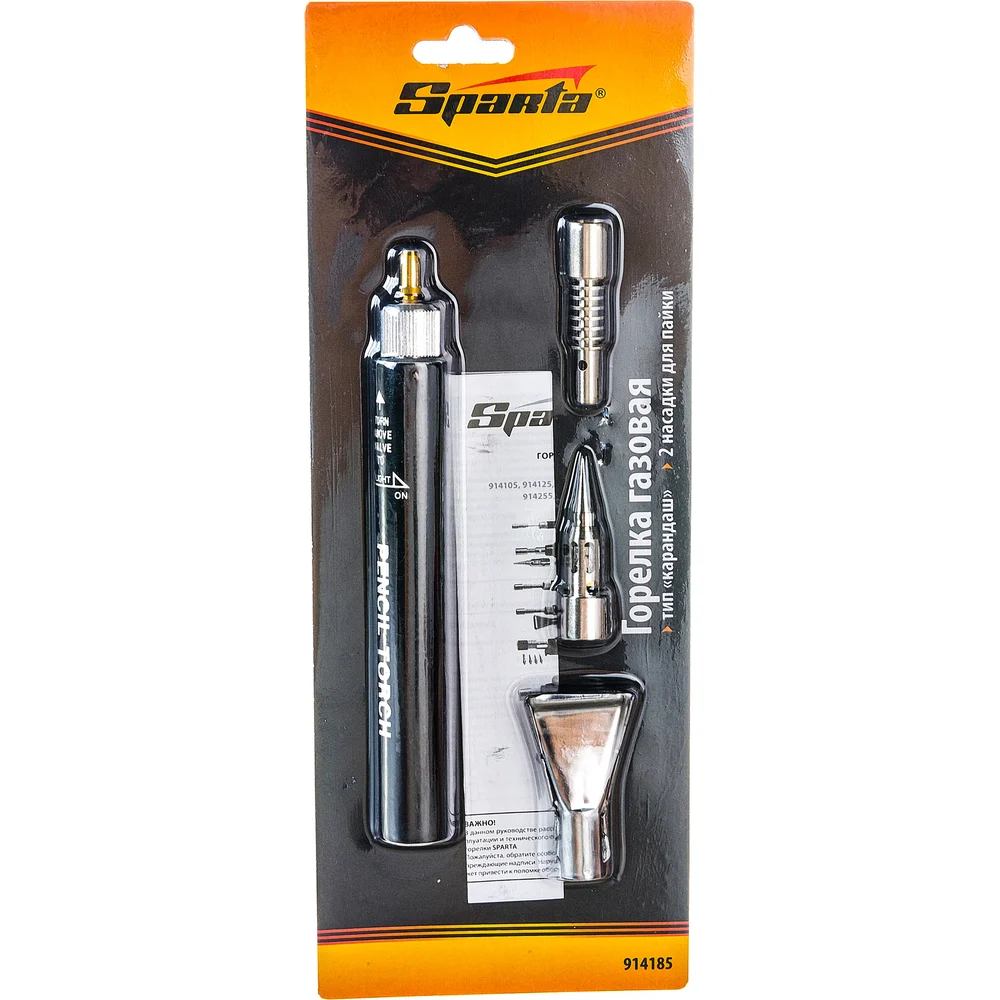 Купить Газовая горелка SPARTA тип "Карандаш" + 2 насадки для пайки, 200 мм 914185 по лучшей цене с доставкой - интернет магазин №1 в России