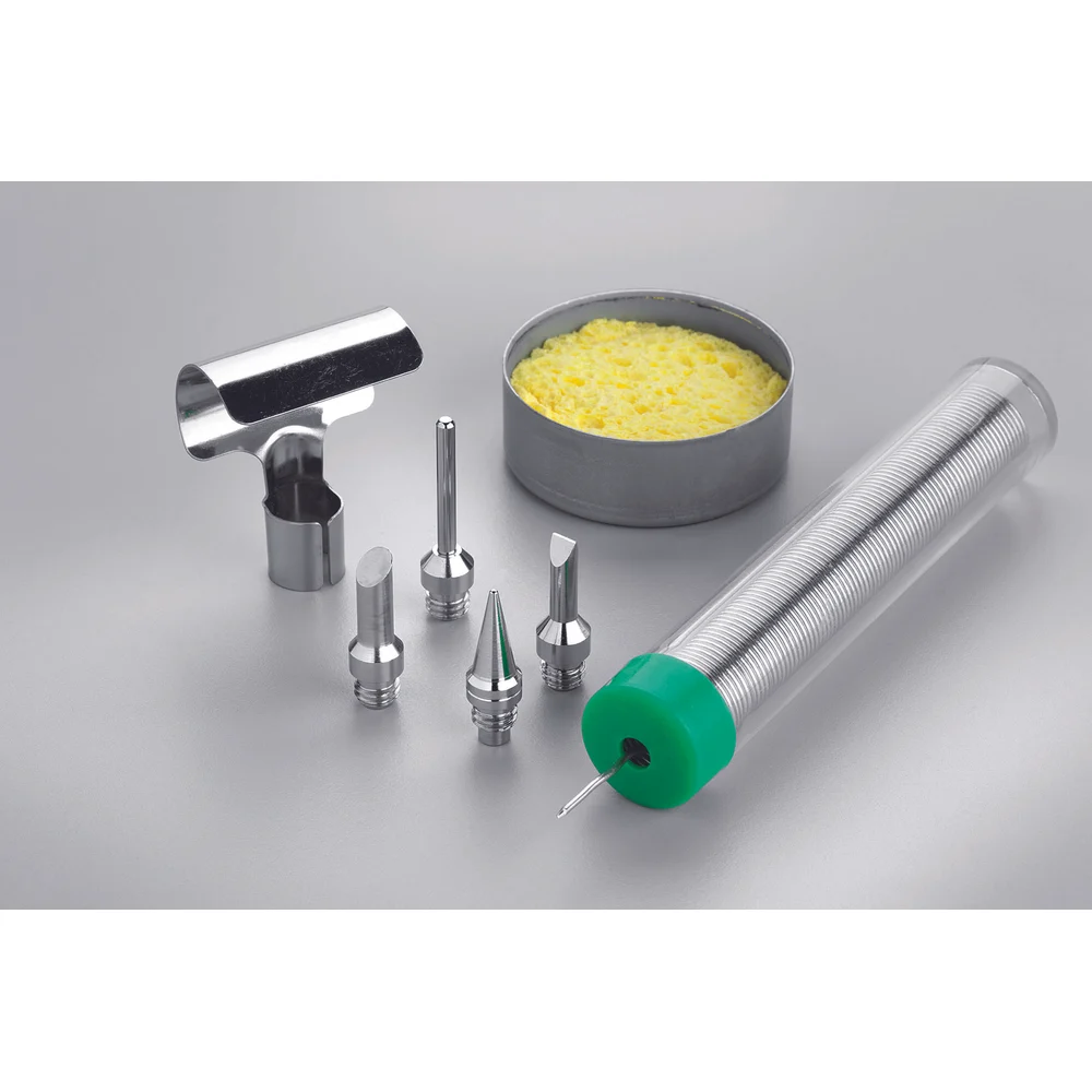 Комплектация Наконечники для пайки/ выжигания древесины; Оловянный валик; Губка для чистки наконечника; Алюминиевый футляр для переноски