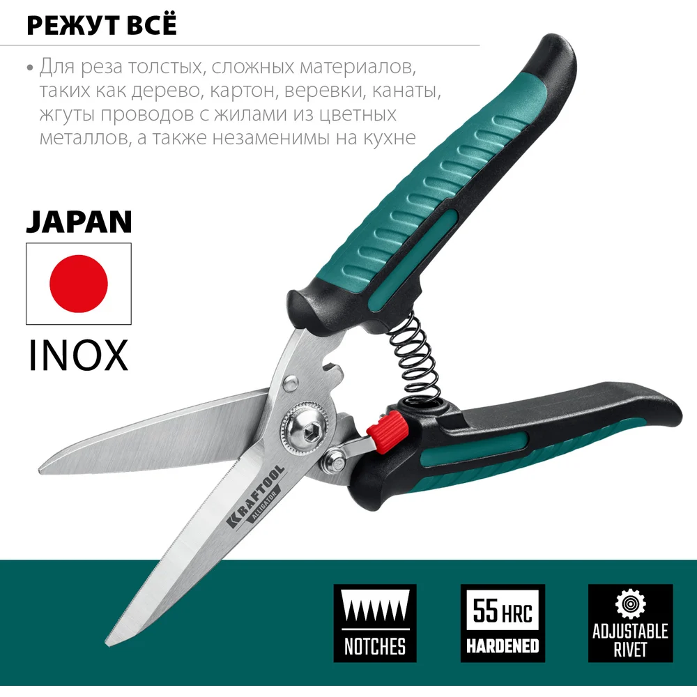 Купить Многофункциональные прямые технические ножницы KRAFTOOL Alligator 200 мм 23201 по лучшей цене с доставкой - интернет магазин №1 в России