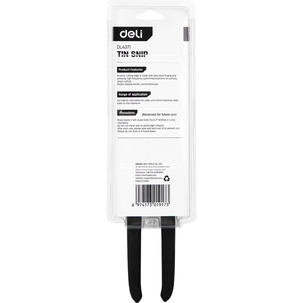 Ножницы по металлу DELI dl4371 прямые, легированная сталь, двухкомпонентная рукоять 118718