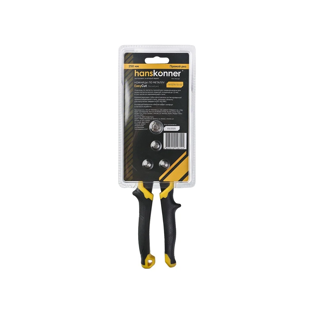 Купить Ножницы по металлу Hanskonner 250 мм, прямой рез, СrMо HK1074-10-02 по лучшей цене с доставкой - интернет магазин №1 в России