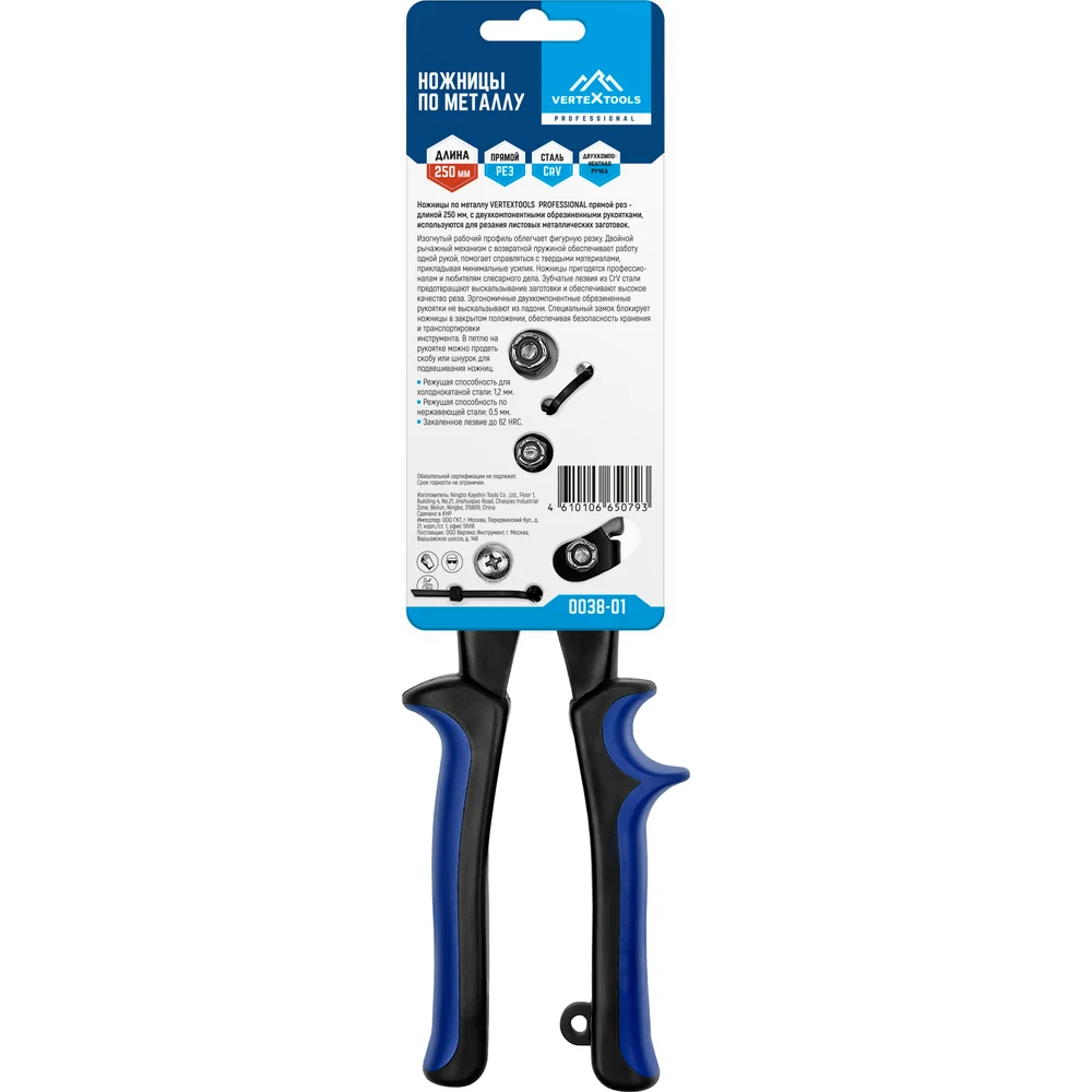 Купить Ножницы по металлу vertextools PROFFESSIONAL 250 мм, прямой рез 0038-01 по лучшей цене с доставкой - интернет магазин №1 в России