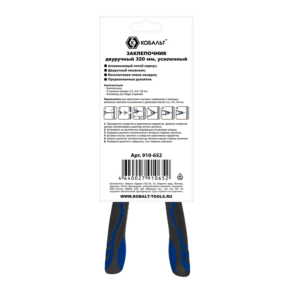 Купить Двуручный заклепочник, 320 мм КОБАЛЬТ 910-652 по лучшей цене с доставкой - интернет магазин №1 в России