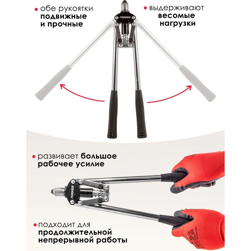 Купить Двуручный заклепочник Forsage L-420мм, заклепки: 3,2, 4,0, 4,8мм F-678535(51644) по лучшей цене с доставкой - интернет магазин №1 в России