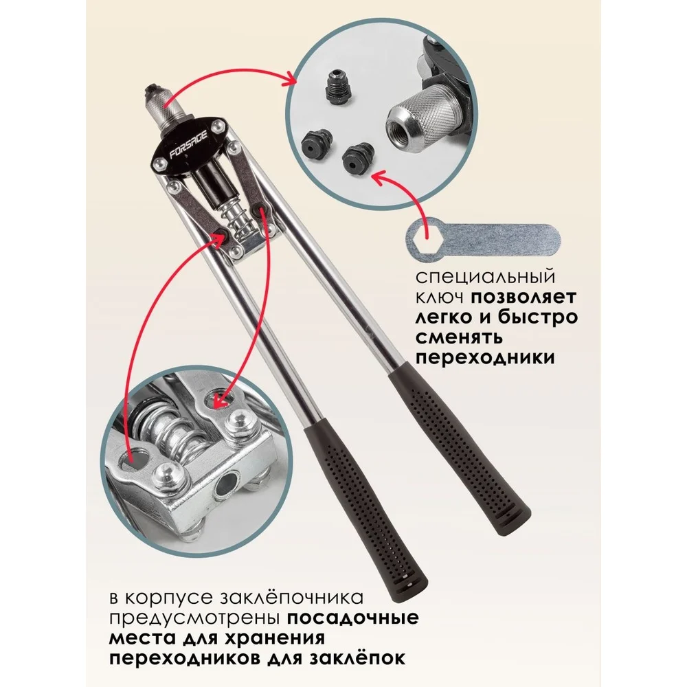 Двуручный заклепочник Forsage L-420мм, заклепки: 3,2, 4,0, 4,8мм F-678535(51644)