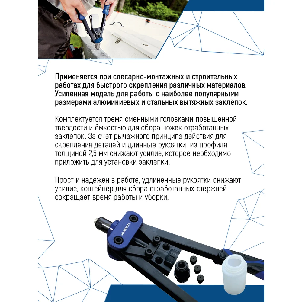 Купить Двуручный заклепочник vertextools PROFI усиленный 0041-02 по лучшей цене с доставкой - интернет магазин №1 в России
