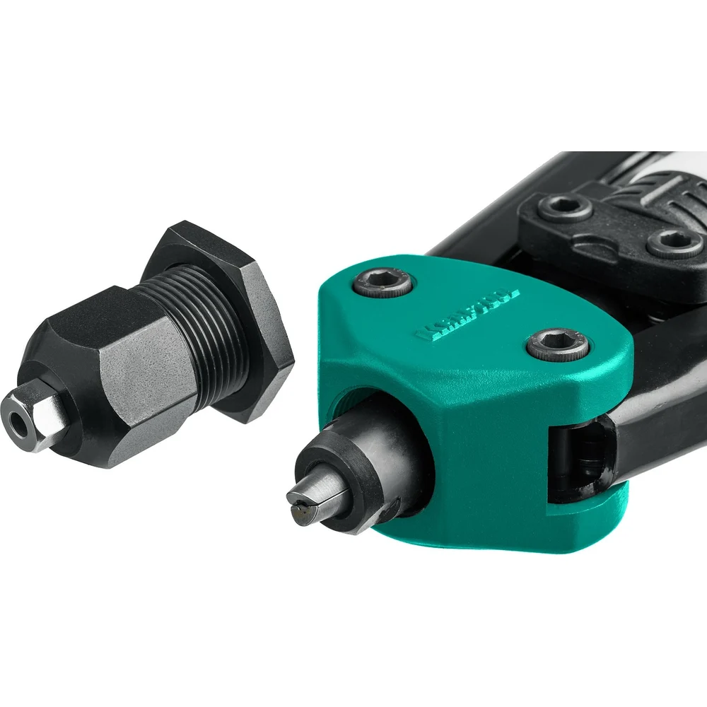 Комплектация Заклепочник - 1шт; Съемные насадки 3.2, 4.0, 4.8, 6.4 мм - 4шт; Накидной ключ 10мм - 1шт; Контейнер для отработанных заклепок - 1шт