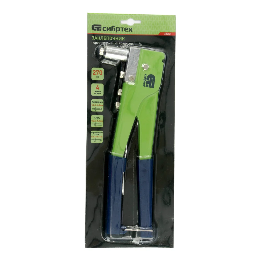 Купить Переставной заклепочник СИБРТЕХ 270 мм, 0-90 градусов, заклепки 2,4-3,2-4,0-4,8 мм 40543 по лучшей цене с доставкой - интернет магазин №1 в России