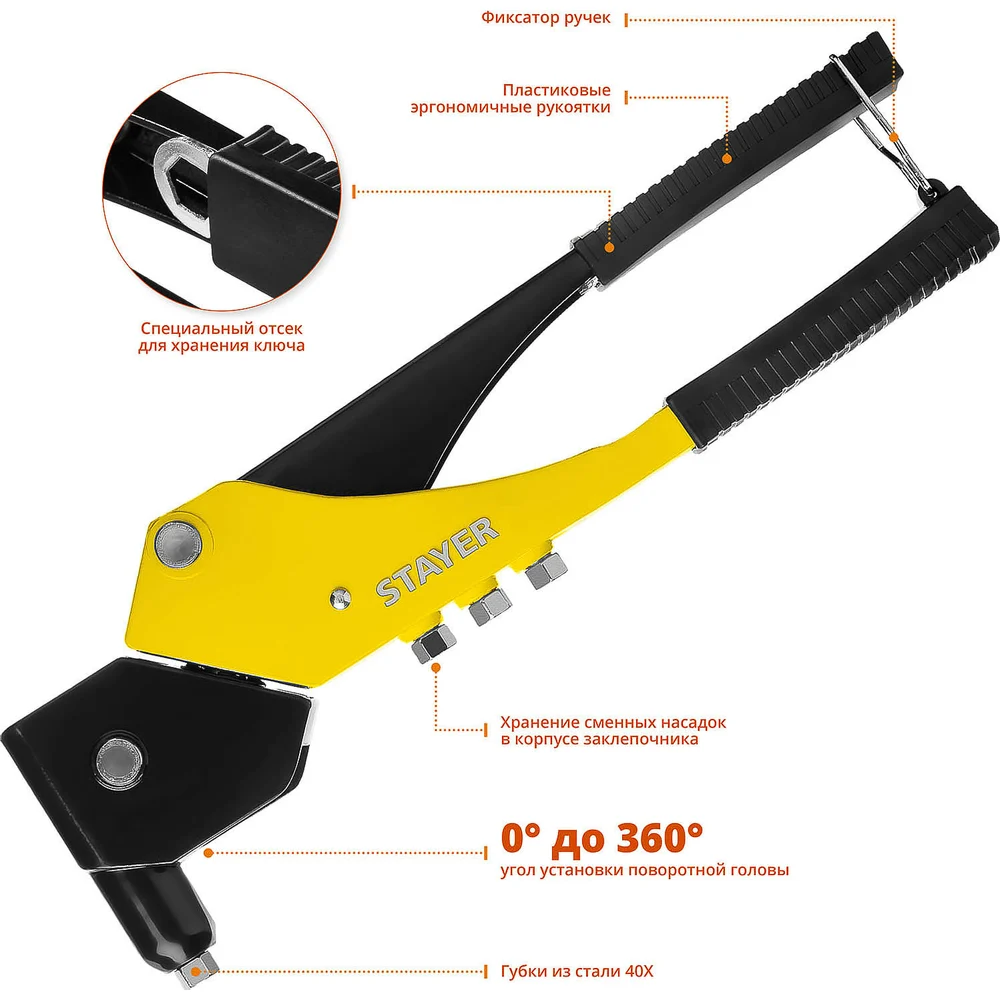 Купить Поворотный заклепочник STAYER MS-360 0-360°, 280 мм, 2.4 - 4.8 мм 3110_z01 по лучшей цене с доставкой - интернет магазин №1 в России