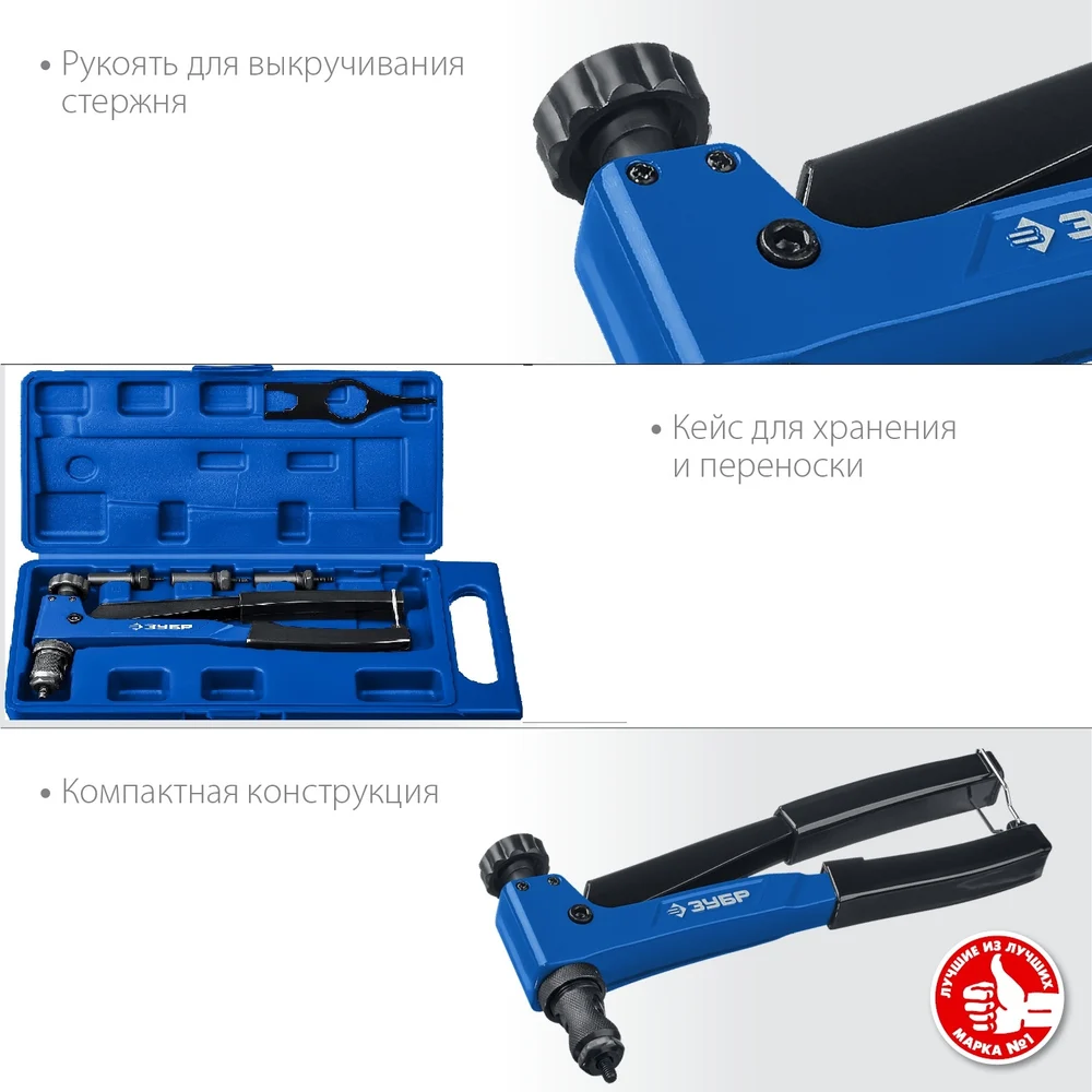 Купить Резьбовой заклепочник в кейсе ЗУБР Профессионал Р-М6 М3 - М6 31055 по лучшей цене с доставкой - интернет магазин №1 в России