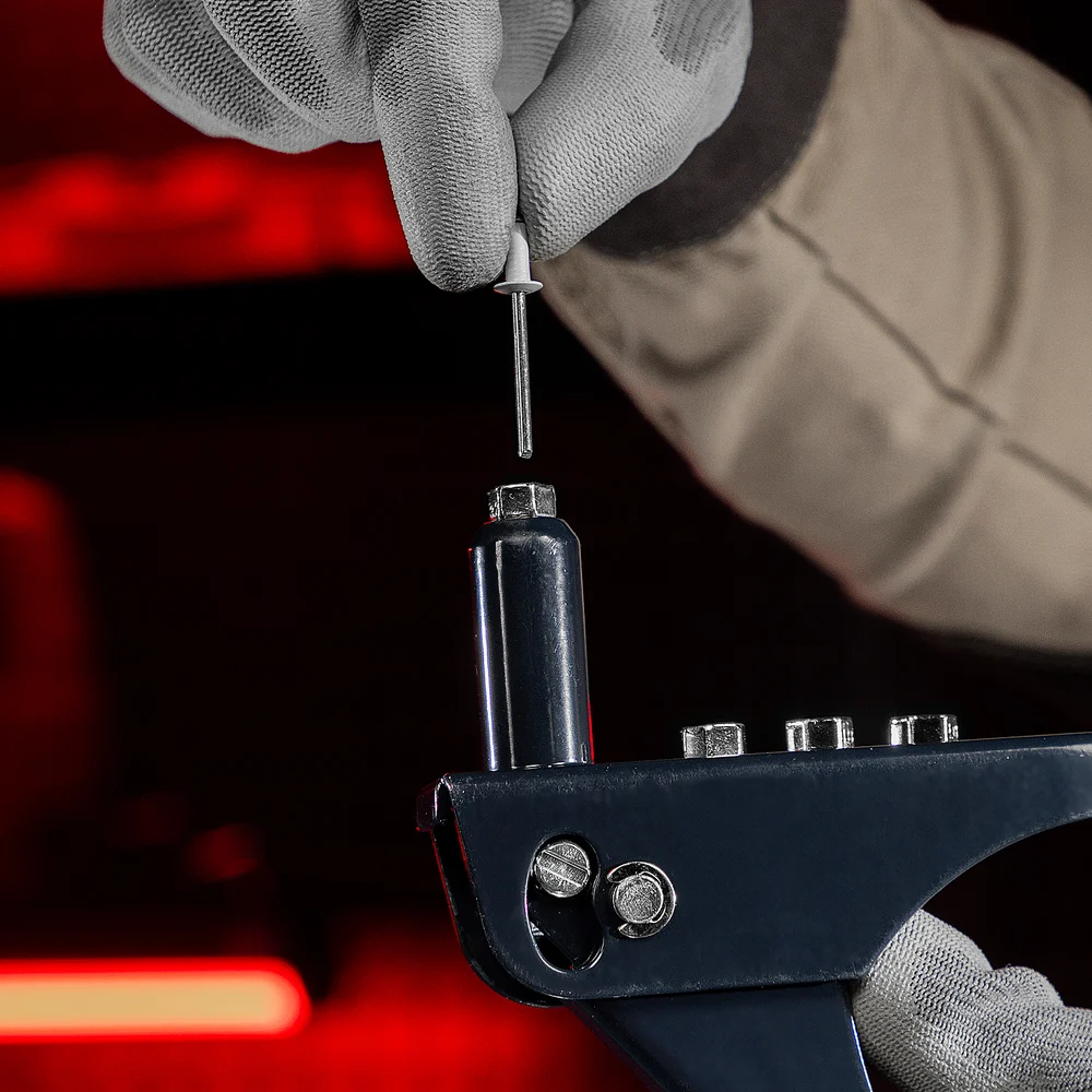 Комплектация 4 насадки под заклепки: 2.4, 3.2, 4.0, 4.8 мм; Заклепочник; Ключ для смены насадок