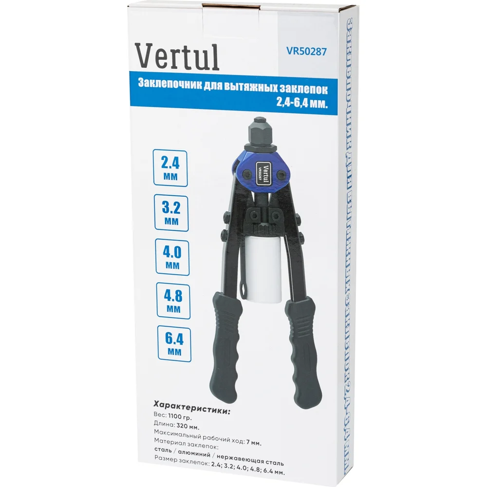 Купить Заклепочник для вытяжных заклепок VERTUL 2.4-6.4 мм VR50287 по лучшей цене с доставкой - интернет магазин №1 в России