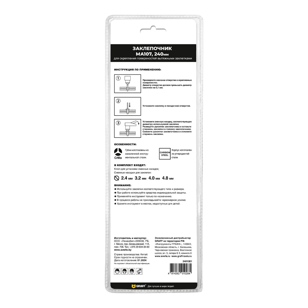 Купить Заклепочник GRAFF МА107 240 мм 2401001 по лучшей цене с доставкой - интернет магазин №1 в России