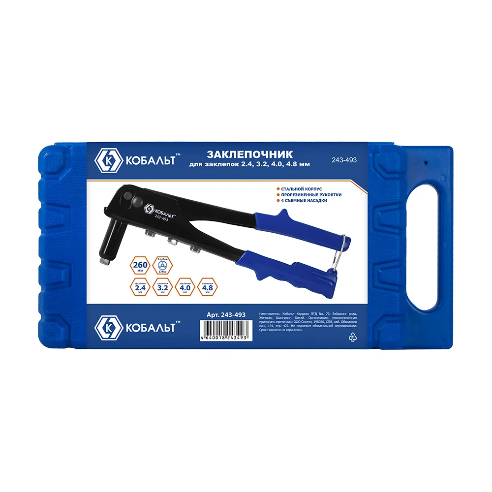 Купить Заклепочник КОБАЛЬТ 270 мм кейс 243-493 по лучшей цене с доставкой - интернет магазин №1 в России