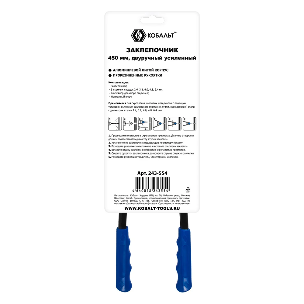 Купить Заклепочник КОБАЛЬТ 450 мм двуручный 243-554 по лучшей цене с доставкой - интернет магазин №1 в России