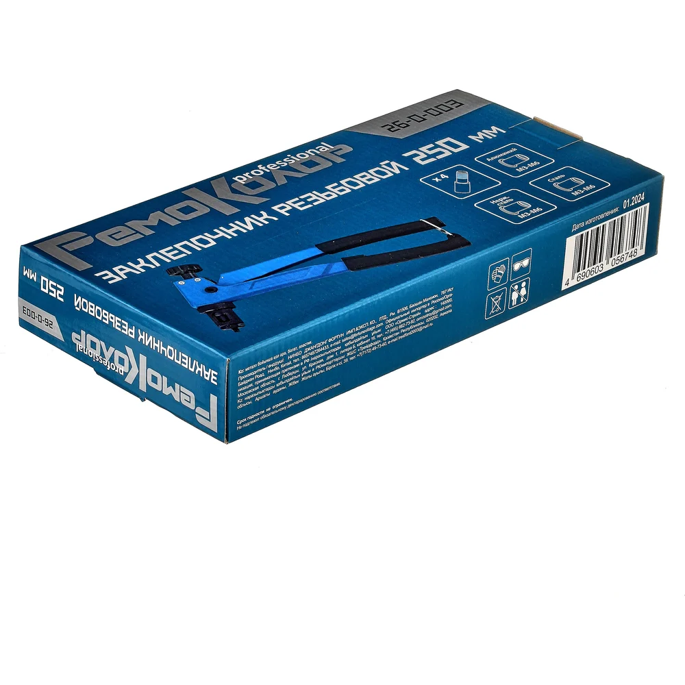 Заклепочник резьбовой РемоКолор 250 мм, литой корпус, насадки M3, M4, M5, M6, кейс, (шт.) 26-0-003