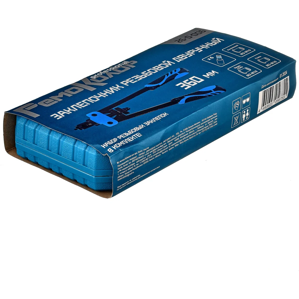 Купить Заклепочник резьбовой РемоКолор двуручный 360 мм, литой корпус, насадки M3, M4, M5, M6, M8, M10 кейс, (шт.) 26-0-006 по лучшей цене с доставкой - интернет магазин №1 в России