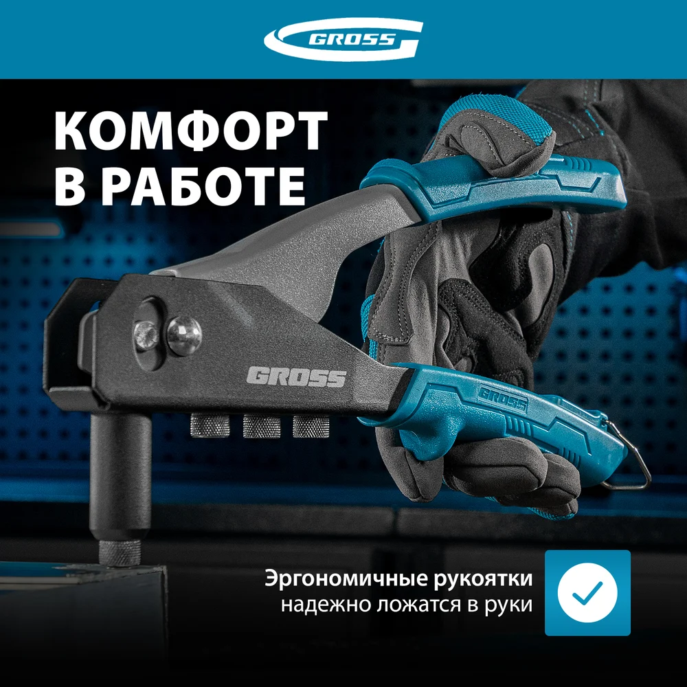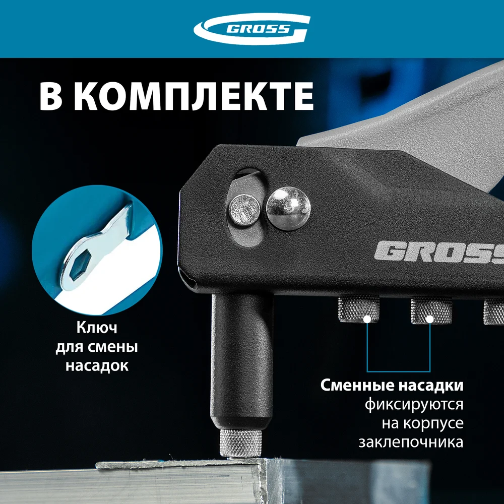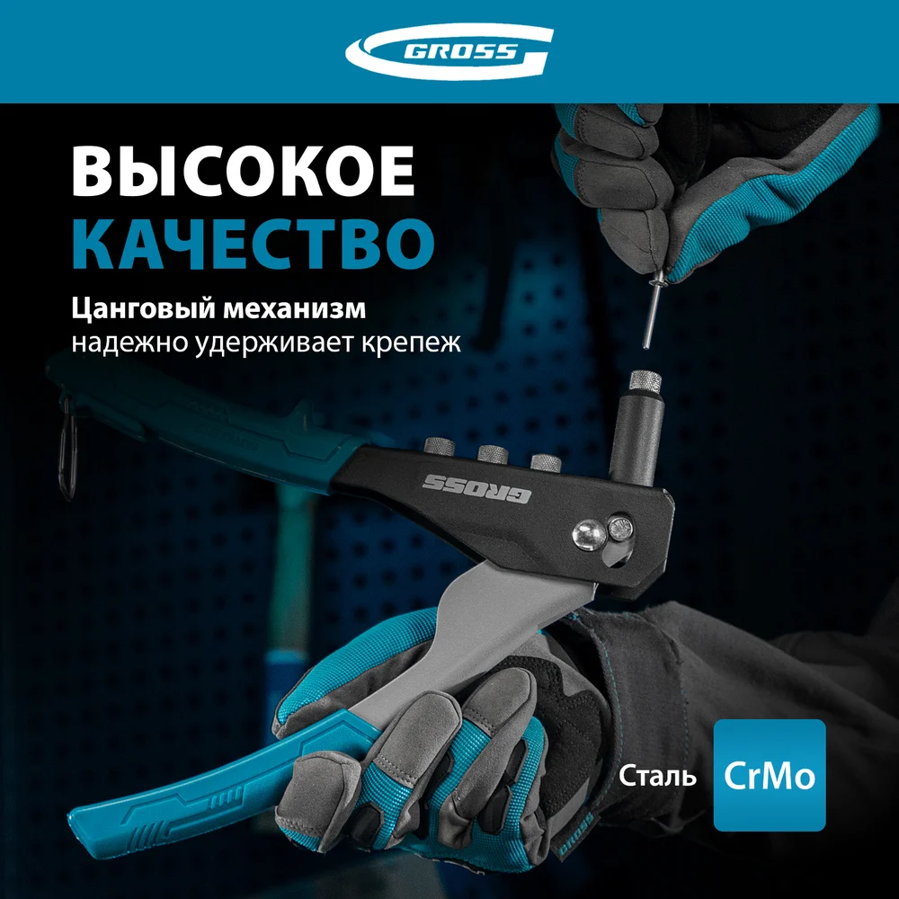 Купить Заклепочник ручной GROSS 260 мм, заклепки 2, 4-3, 2-4, 0-4, 8 мм. 40415 по лучшей цене с доставкой - интернет магазин №1 в России