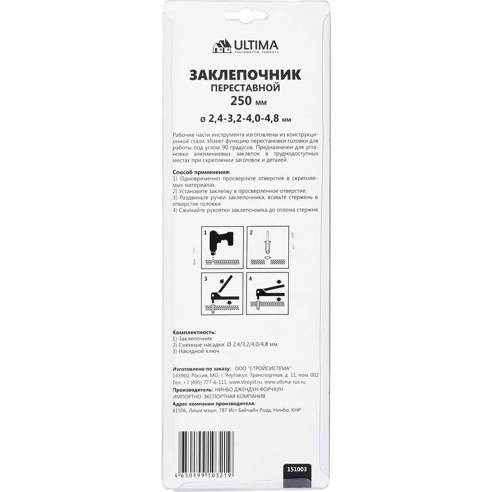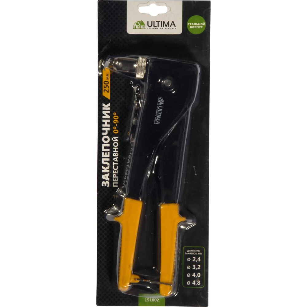 Купить Заклепочник ULTIMA 250 мм, переставной 0-90 градусов, заклепки 2.4-4.8 мм 151003 по лучшей цене с доставкой - интернет магазин №1 в России