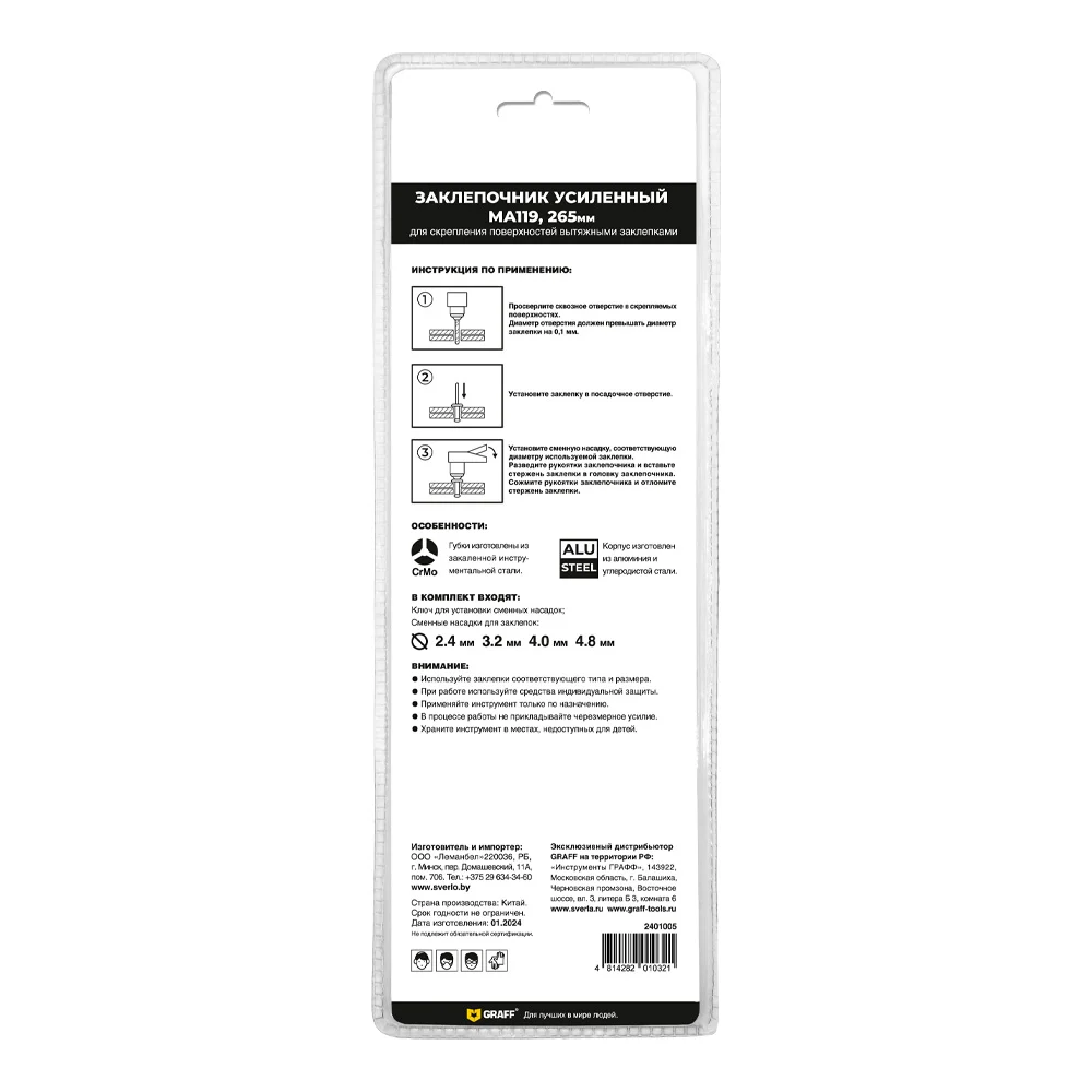 Купить Заклепочник усиленный GRAFF МА119 265 мм 2401005 по лучшей цене с доставкой - интернет магазин №1 в России