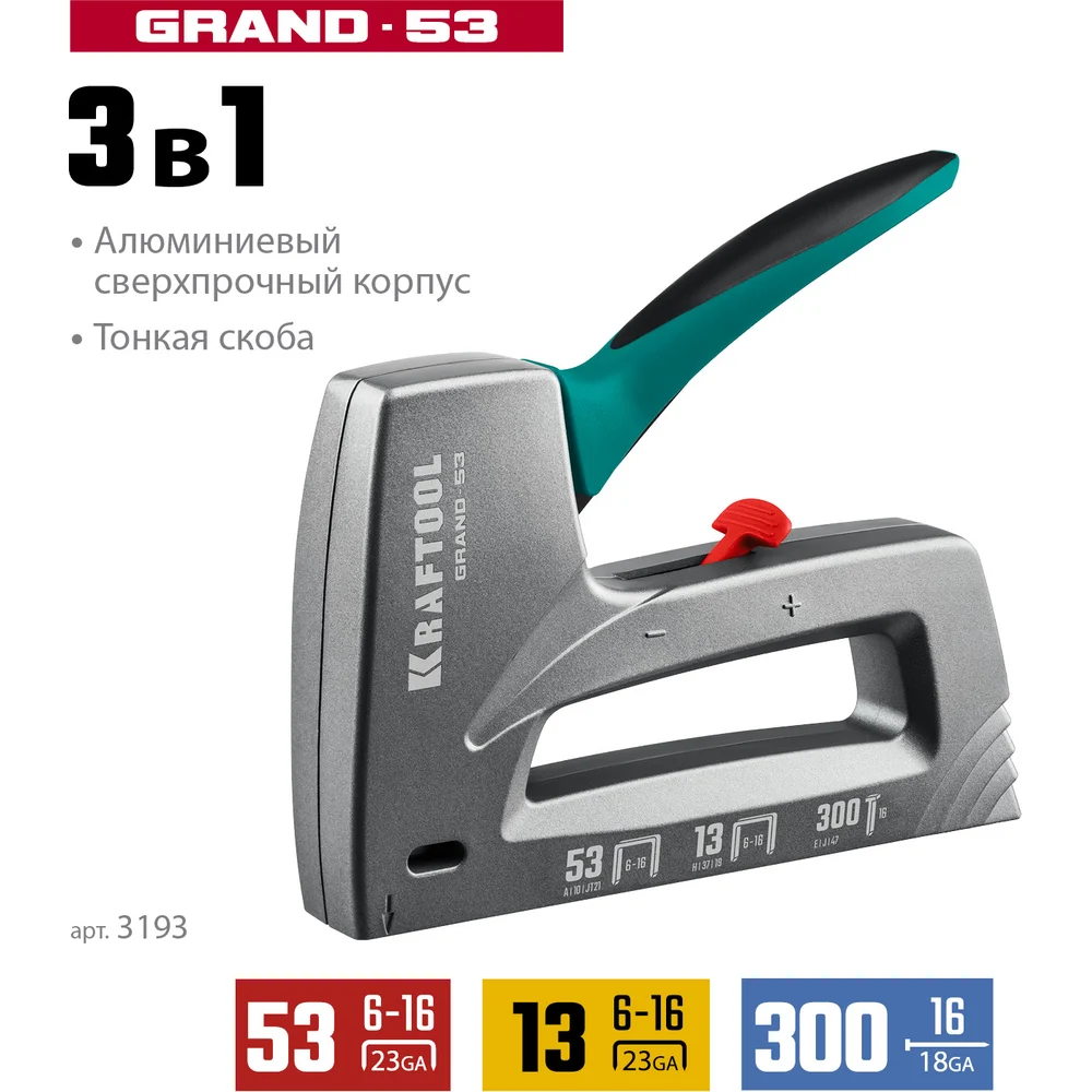 Купить Алюминиевый степлер KRAFTOOL Grand-53 тип 53, 13, 300 3193 по лучшей цене с доставкой - интернет магазин №1 в России