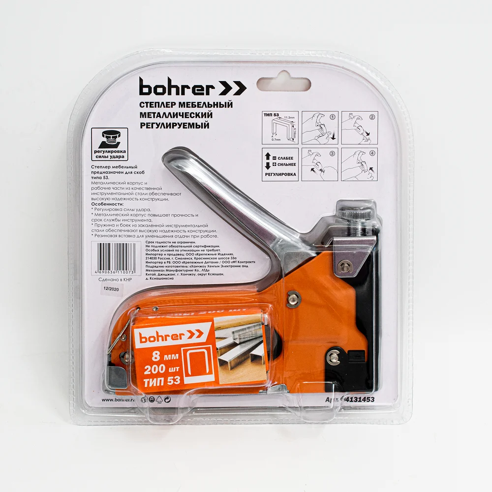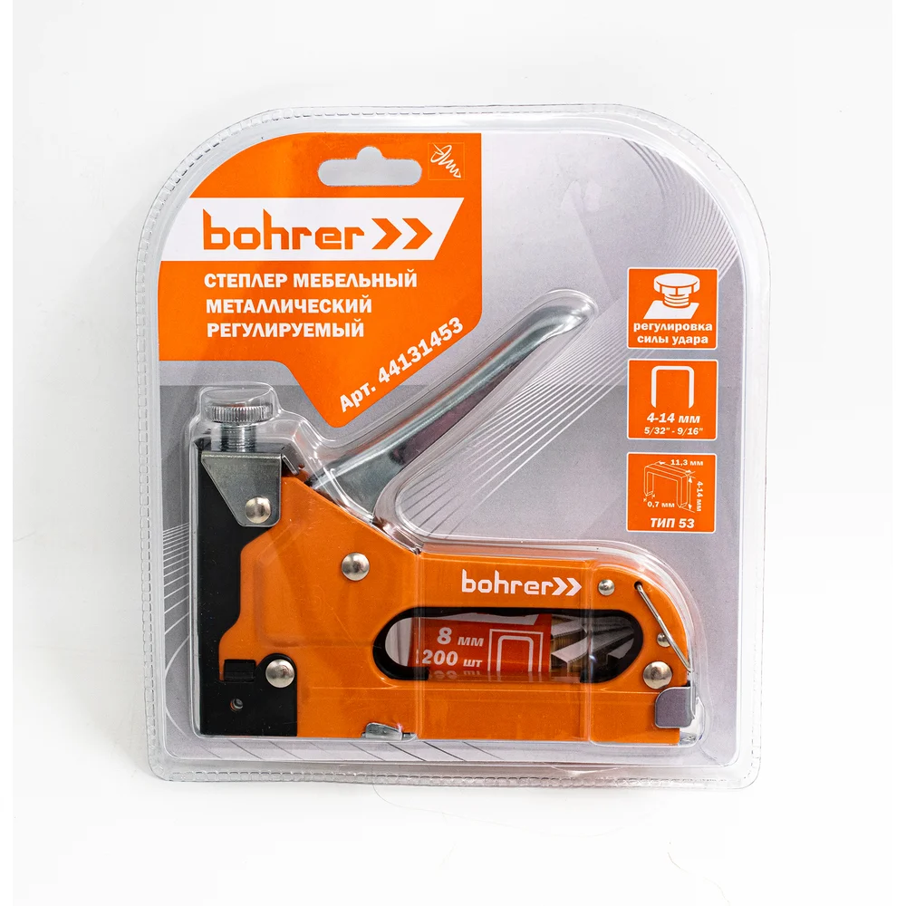 Купить Мебельный степлер Bohrer 4-14 мм усиленный, тип скобы 53, с регулировкой силы, металлический 44131453 по лучшей цене с доставкой - интернет магазин №1 в России