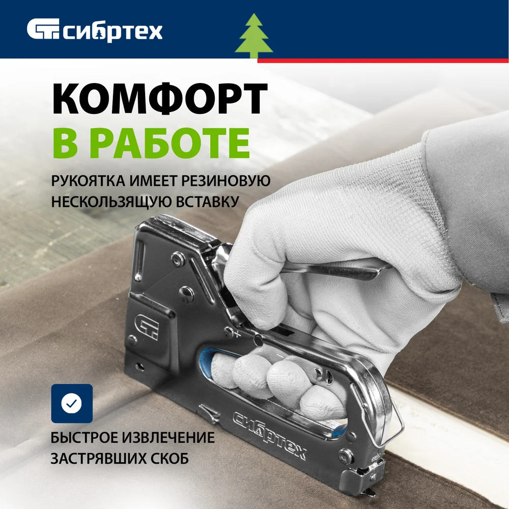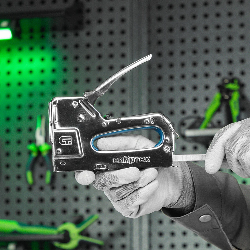 Купить Мебельный степлер СИБРТЕХ металлический, регулируемый, тип скобы 53, 4-14 мм 40101 по лучшей цене с доставкой - интернет магазин №1 в России