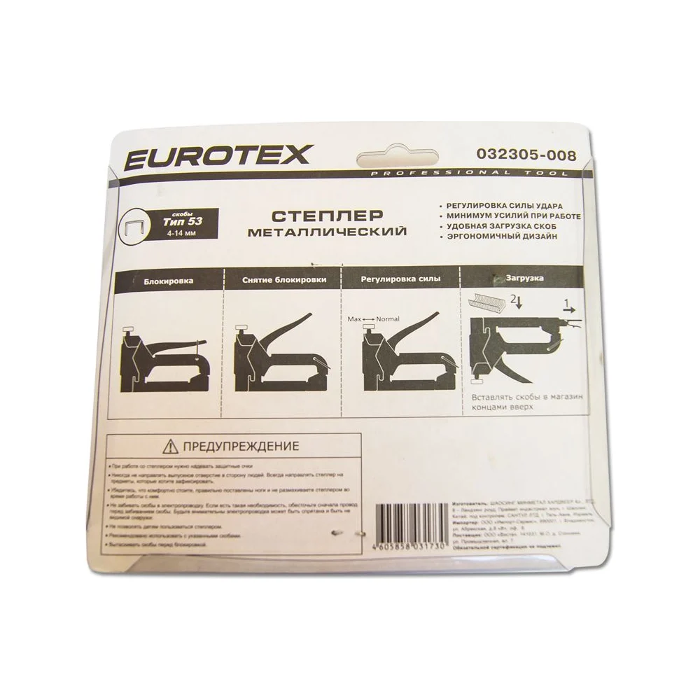 Купить Металлический степлер EUROTEX тип скобы №53, 4-14мм 032305-008 по лучшей цене с доставкой - интернет магазин №1 в России