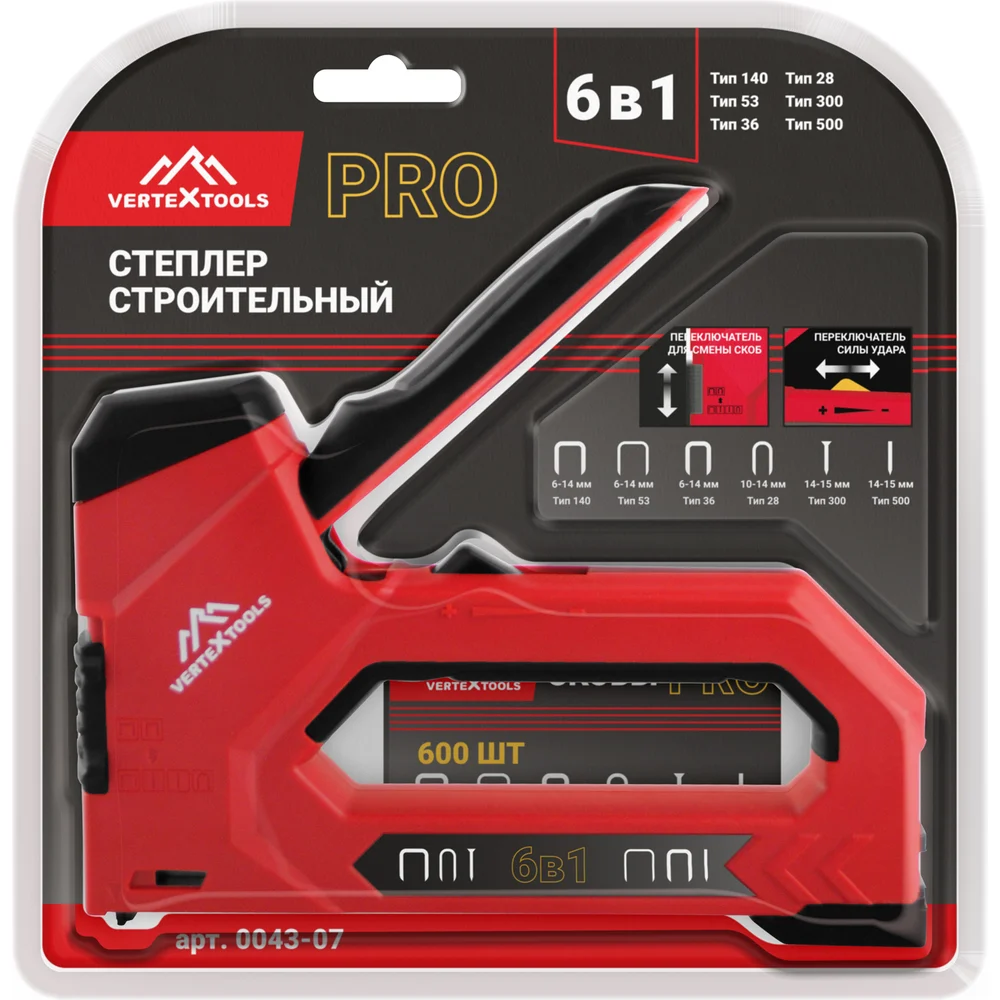 Купить Многофункциональный строительный степлер vertextools PRO 6-14 мм, тип 140, 53, 28, 300 0043-07 по лучшей цене с доставкой - интернет магазин №1 в России