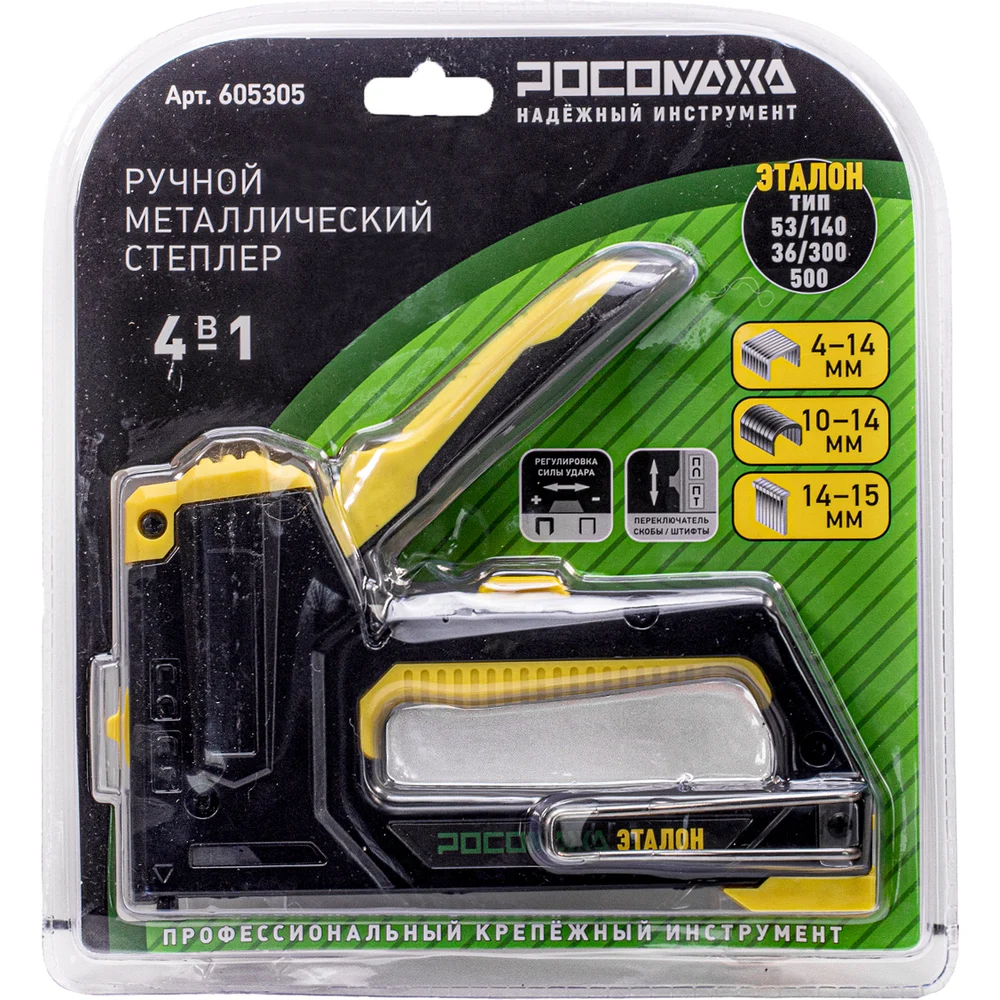 Купить Ручной металлический степлер 4 в 1 РОСОМАХА ЭТАЛОН тип 53/140/36/300/500, скобы 6-14 мм 605305 по лучшей цене с доставкой - интернет магазин №1 в России
