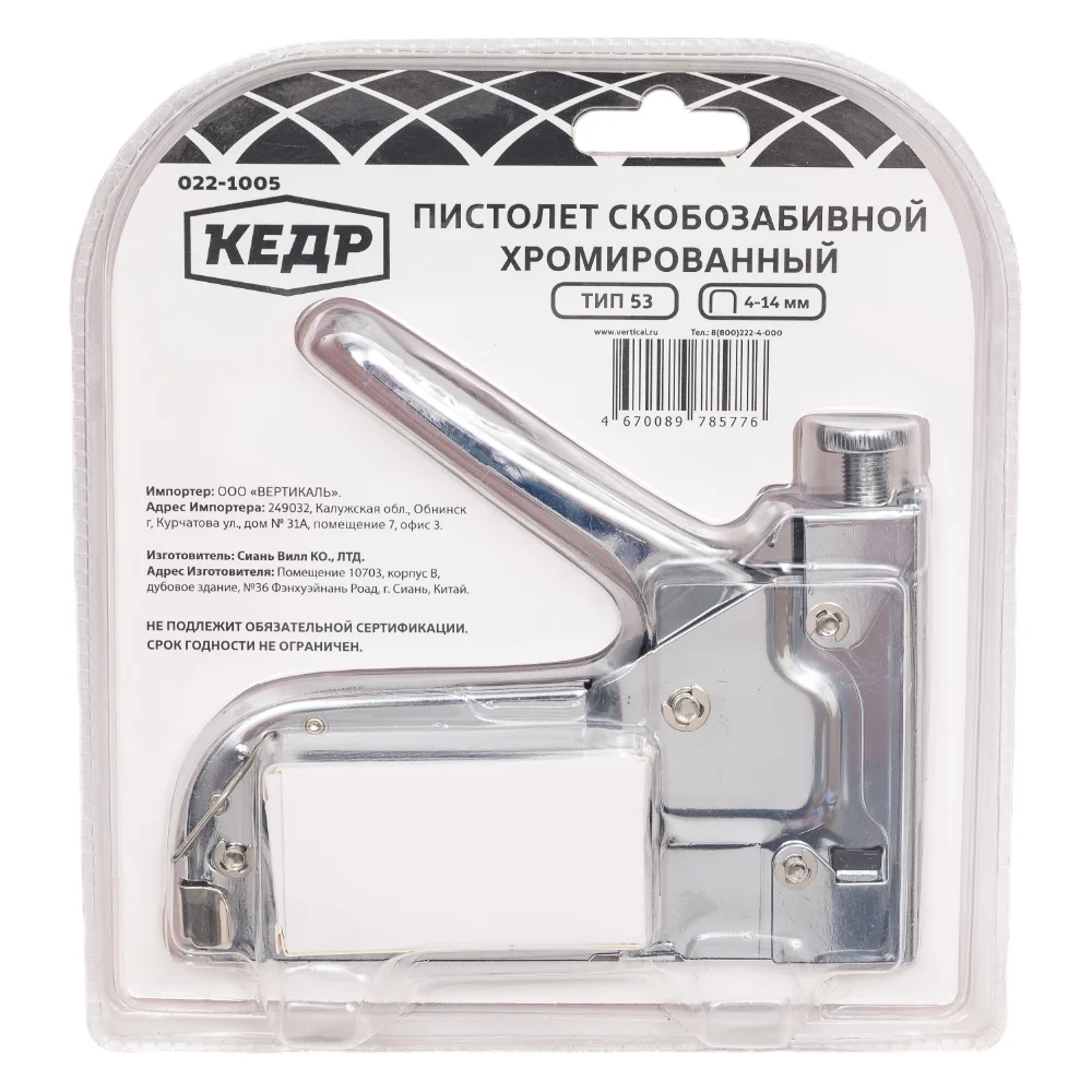 Купить Скобозабивной пистолет Кедр хромированный, тип 53, 4-14 ММ 022-1005 23459 по лучшей цене с доставкой - интернет магазин №1 в России