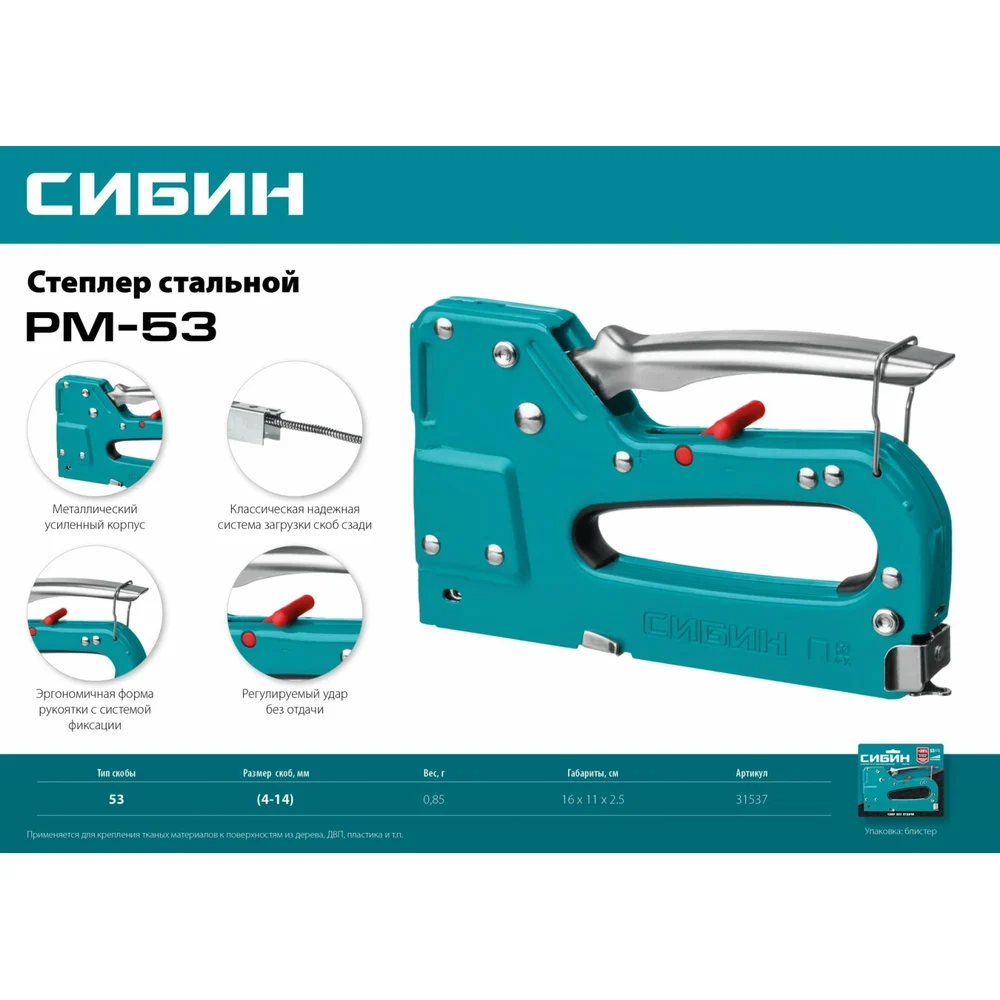Купить Стальной cтеплер СИБИН РМ-53 тип 53 31537 по лучшей цене с доставкой - интернет магазин №1 в России