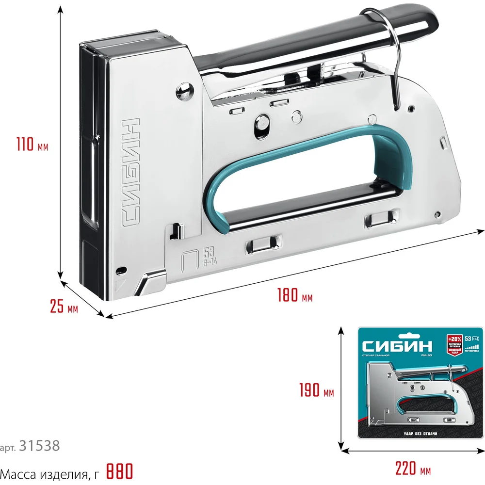 Купить Стальной рессорный степлер СИБИН Урм-53 тип 53 (a/10/jt21) 23ga (6 - 14 мм) 31538 по лучшей цене с доставкой - интернет магазин №1 в России