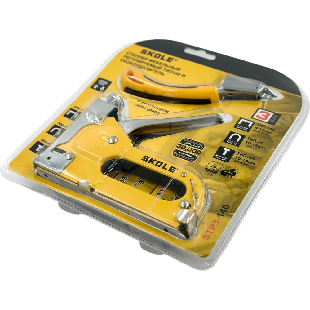 Купить Степлер мебельный Skole 3в1 (с отделителем) 4-14мм тип 140 (степлер, скобоудалитель, скобы тип 140 4-14мм, тип 28 10-12мм, тип 300 10-14мм в уп) STP3-140 по лучшей цене с доставкой - интернет магазин №1 в России