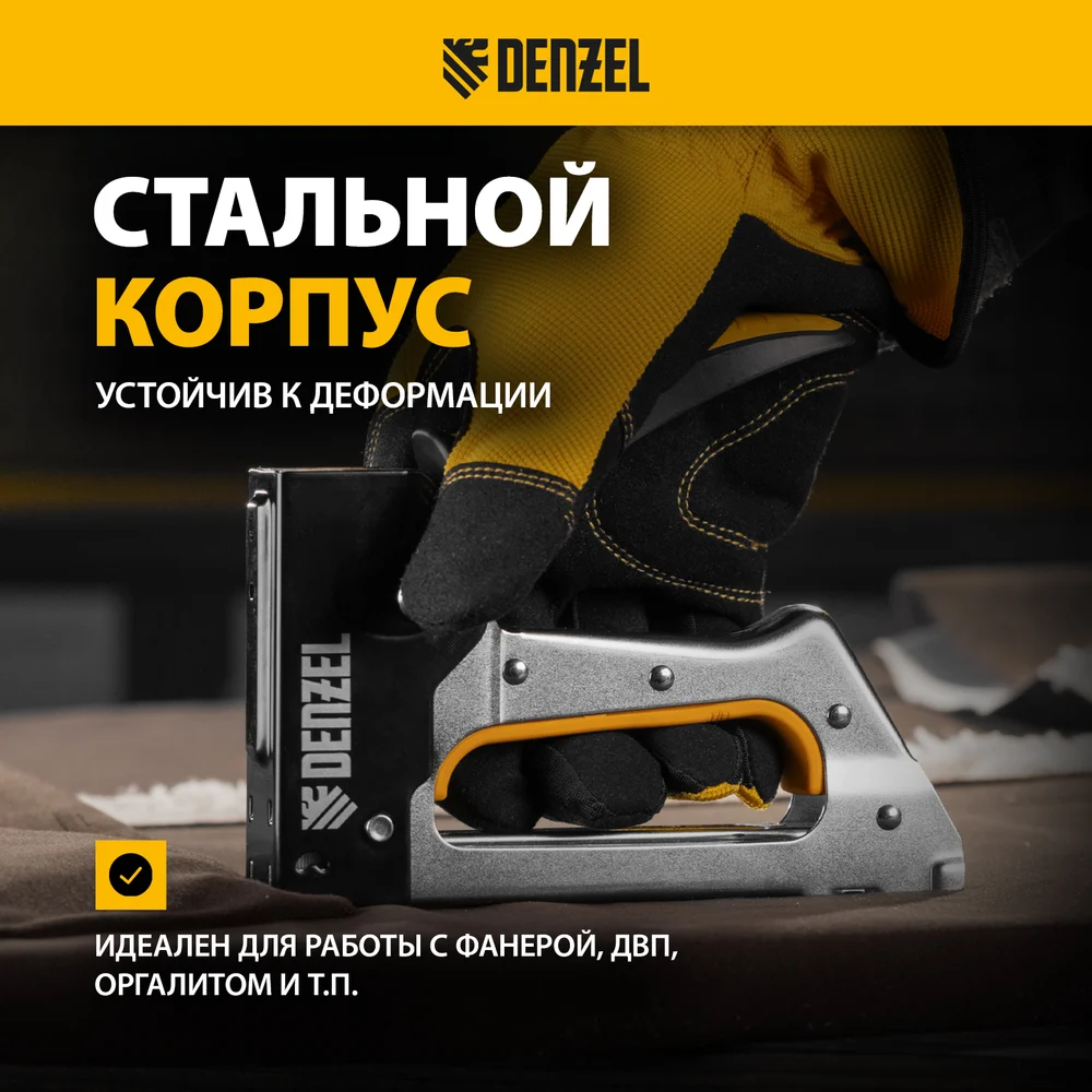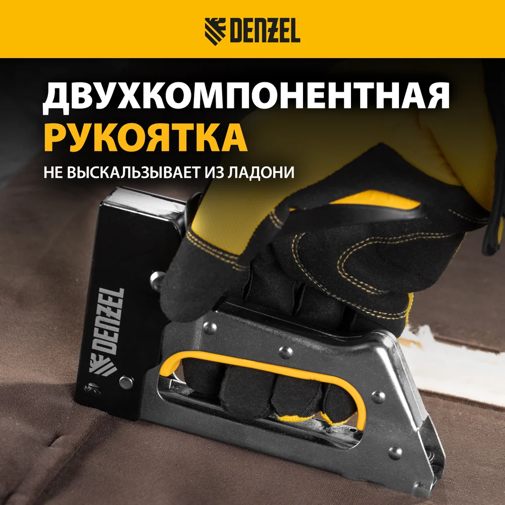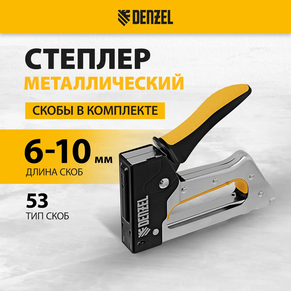 Купить Степлер металлический Denzel скобы в комплекте, 2К рукоятка, тип 53, 6-10 мм 40222 по лучшей цене с доставкой - интернет магазин №1 в России