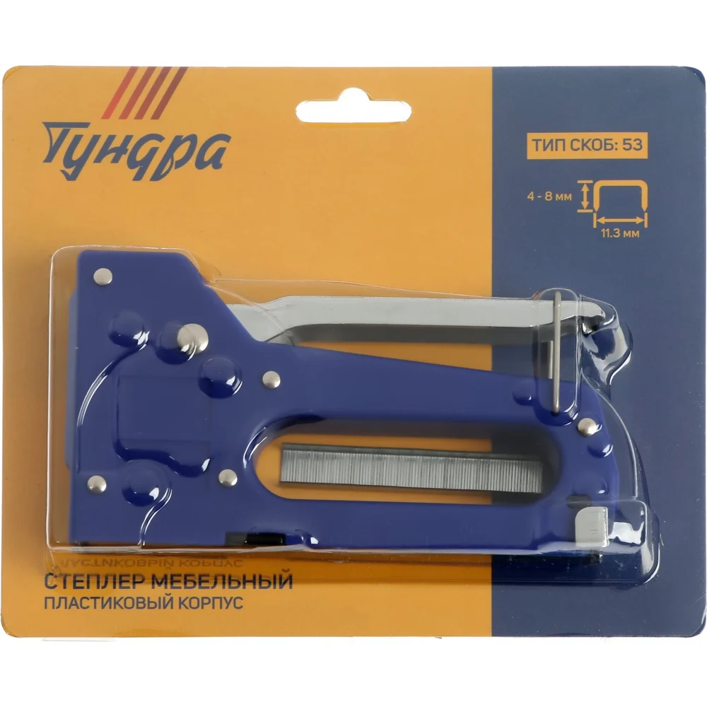 Купить Степлер ТУНДРА мебельный пластиковый корпус, тип скоб 53, 4 - 8 мм 1550259 по лучшей цене с доставкой - интернет магазин №1 в России