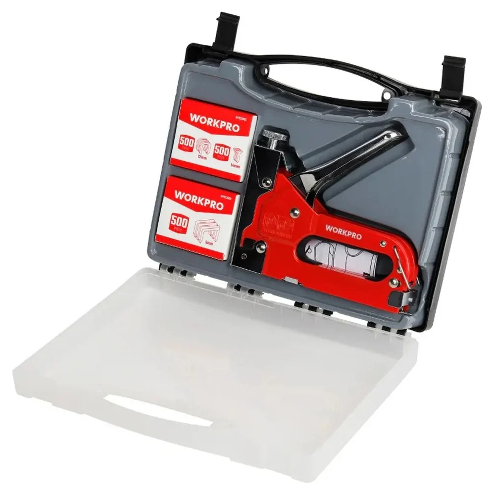 Купить Степлер WORKPRO 3-в-1 4-14мм в кейсе с набором скоб WP223005 по лучшей цене с доставкой - интернет магазин №1 в России