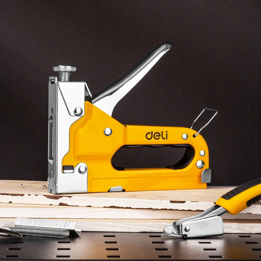 Купить Строительный мебельный степлер DELI металлический с регулировкой + антистеплер DL238105 с набором скоб в кейсе (Тип «П» 4-14мм, «U» 10-12мм и «T» 10-14мм по 2000шт каждых) 98418 по лучшей цене с доставкой - интернет магазин №1 в России