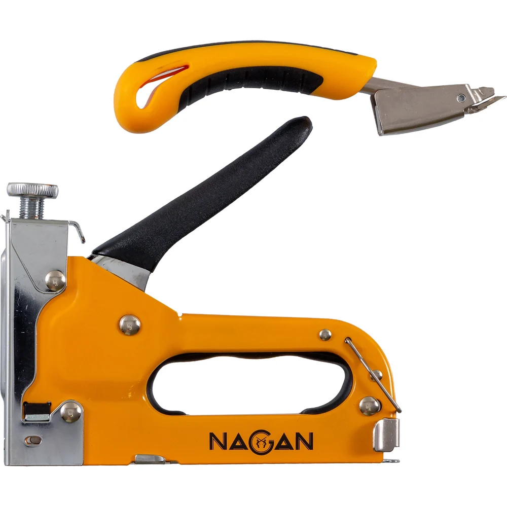 Купить Строительный набор NAGAN степлер, скобоудалитель, скобы, тип 53 4-14 мм, металлический, регулировка удара, двухкомпонентная рукоятка НГ-НСМ-053-022-2 по лучшей цене с доставкой - интернет магазин №1 в России
